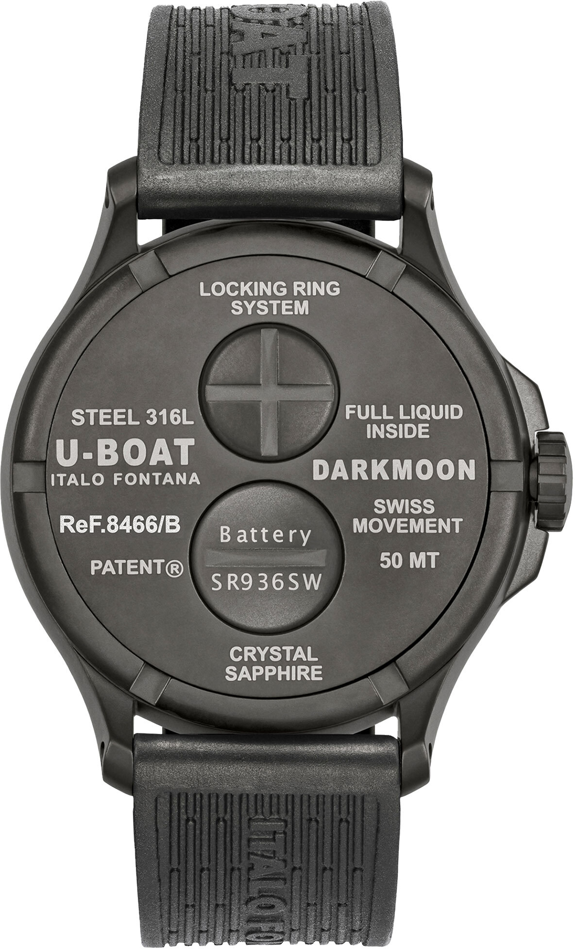 A collection inspired by the dark side of the moon. The PVD case is completely filled with a special oil that emphasizes the dial, creating an optical effect of an higher legibility. Innovative locking system (Locking Ring System) with quick battery replacement.