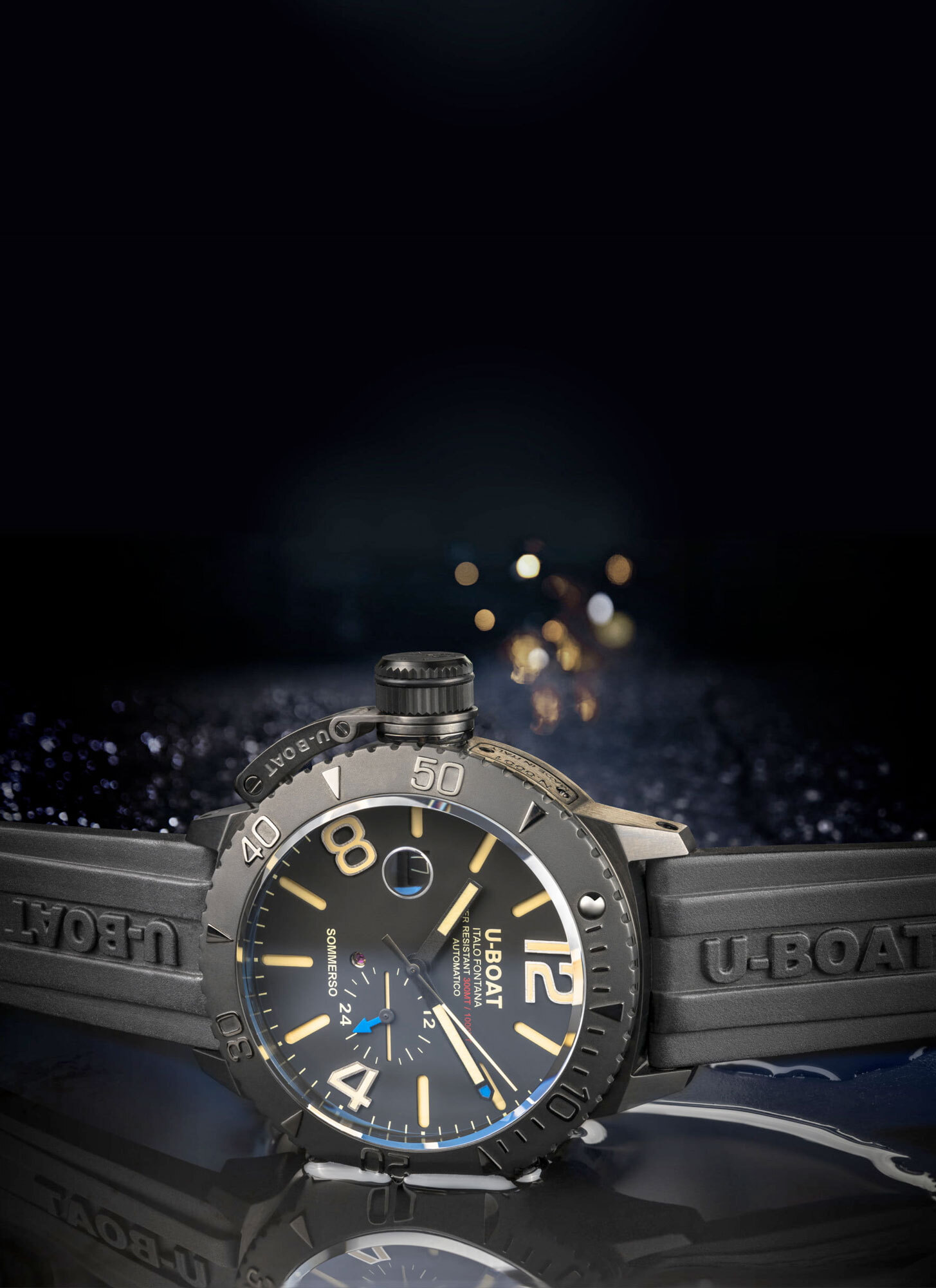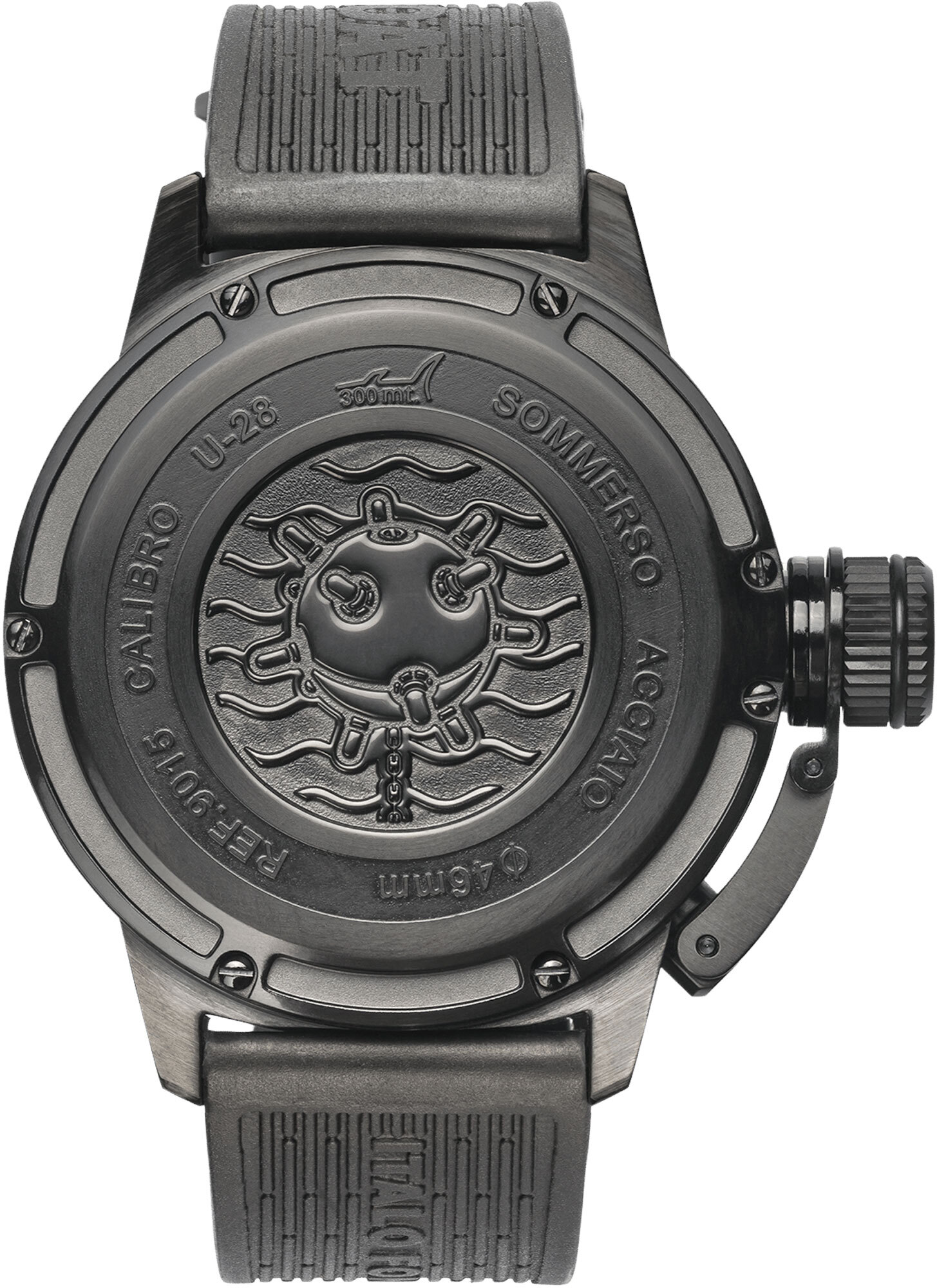 Designed for diving lovers with a classy style, the Sommerso DLC features a steel case with a special Ultra-resistant DLC coating (Diamond like Carbon). Rotating bezel, 300 meters waterproof.