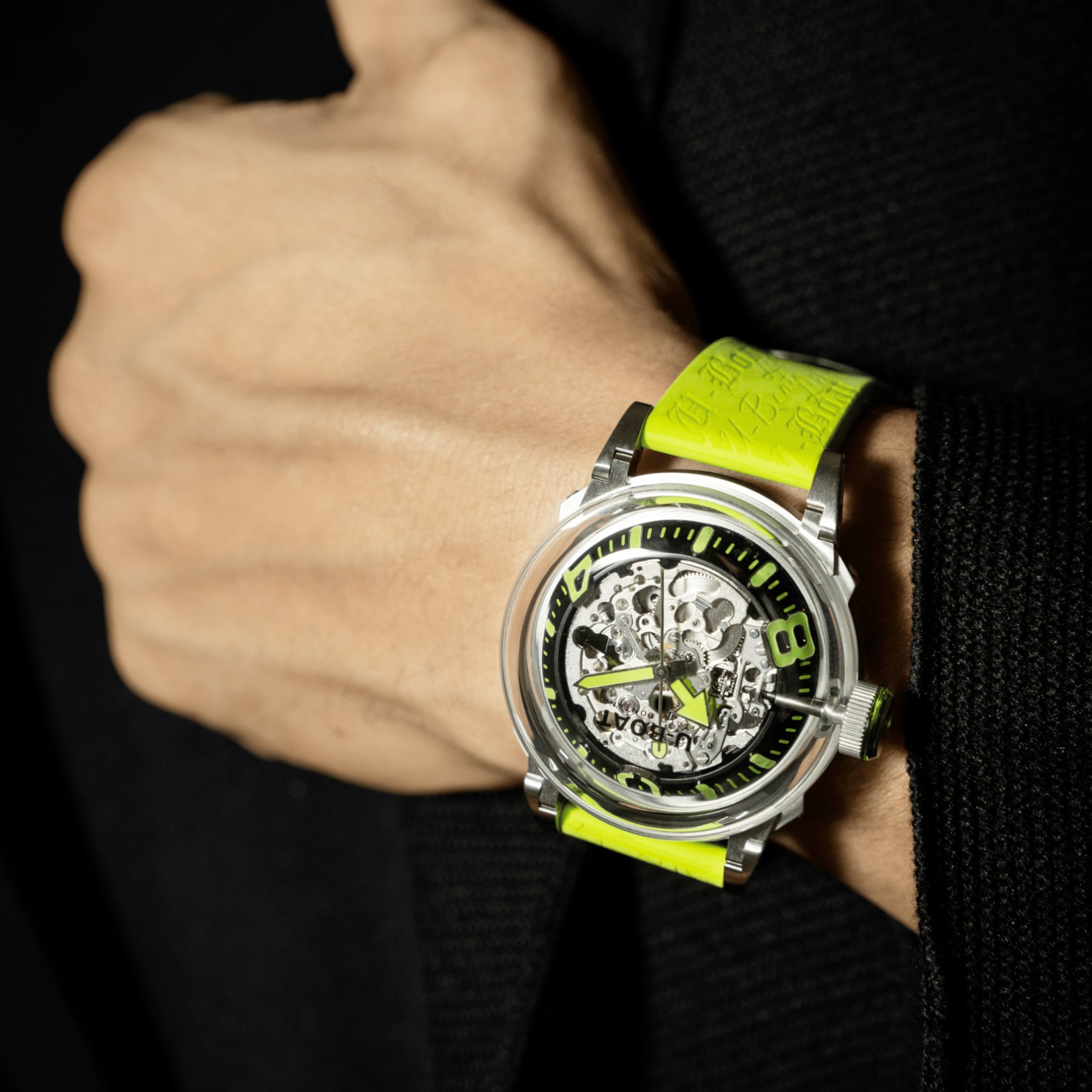 A watch that represents the meeting of contemporary design and precision mechanics. The domed crystal highlights the exposed skeleton movement, allowing the mechanism to be admired in real time: a true spectacle of mechanical perfection. A timepiece with a bold character that showcases its SOUL: a true symbol of personality and innovation.