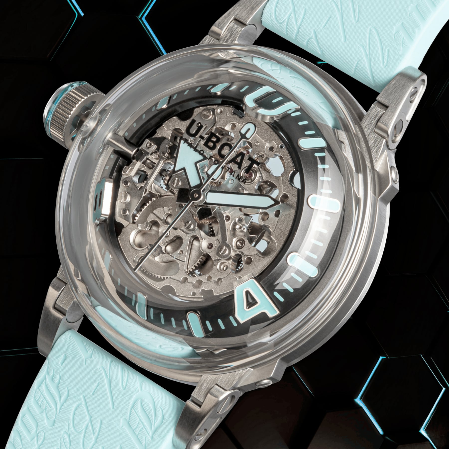 Black metal hands with turquoise Superluminova coating