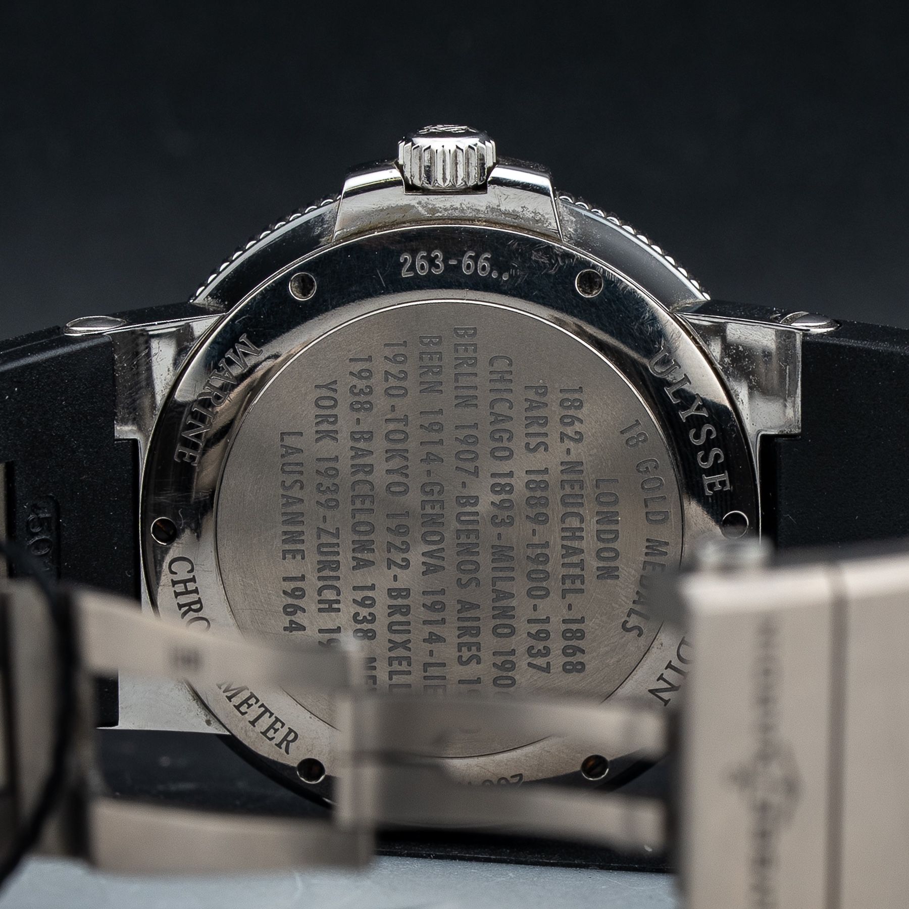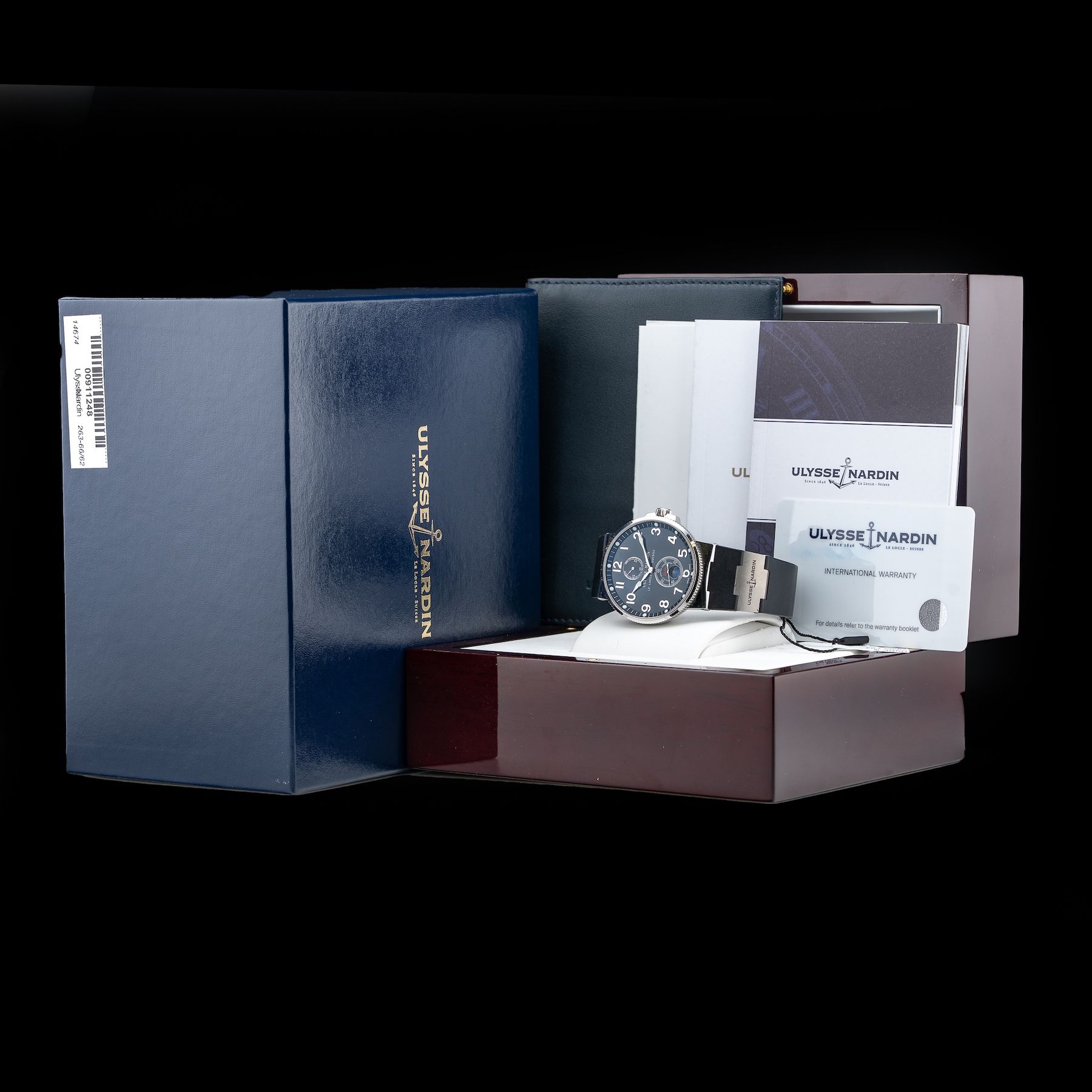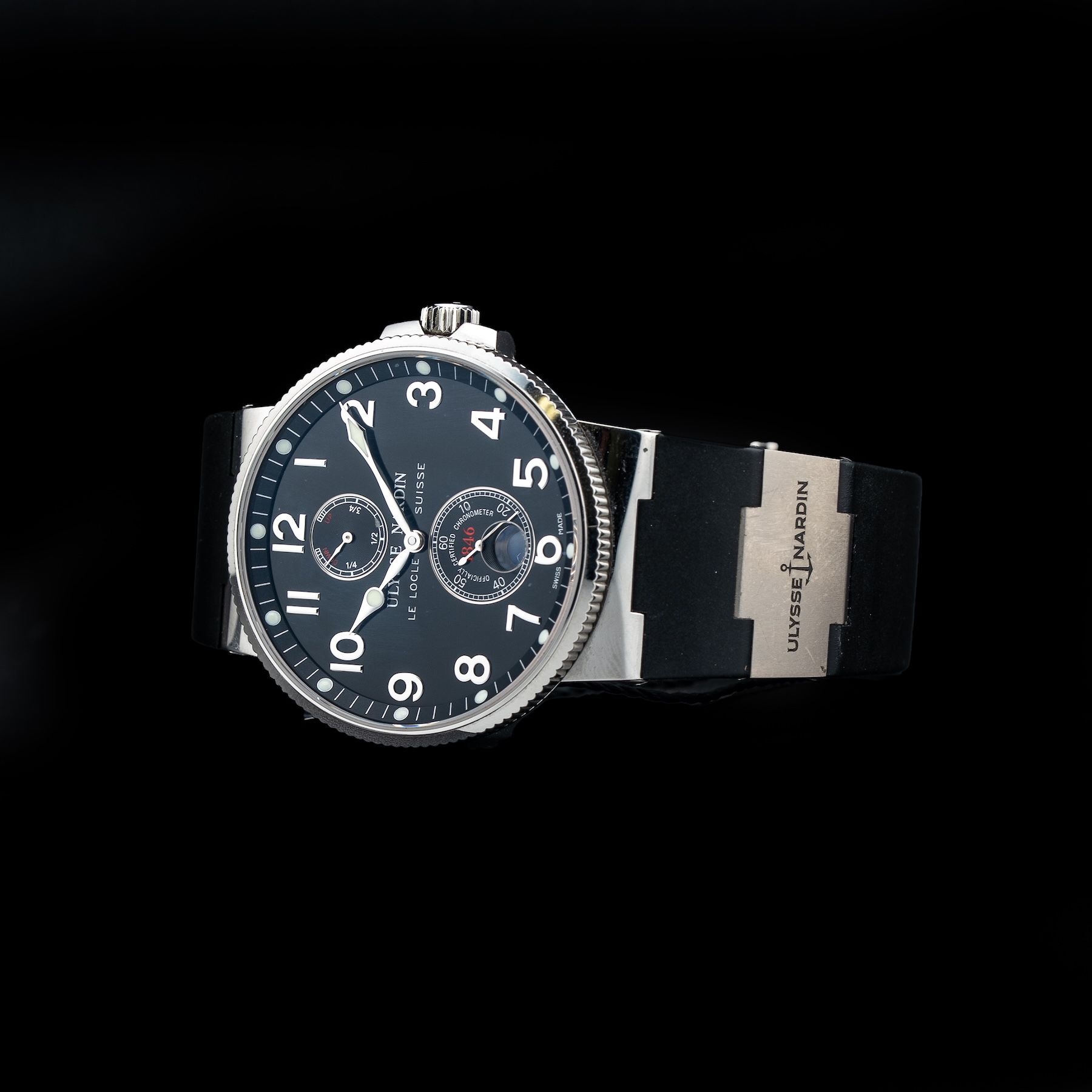 This Ulysse Nardin Maxi Marine Chronometer 263-66/62 is in GREAT condition it has box, papers and warranty card dated 2017. This watch has been fully authenticated and certified by Exquisite Timepieces. Please note, the photos shown are of the actual watch you will receive.