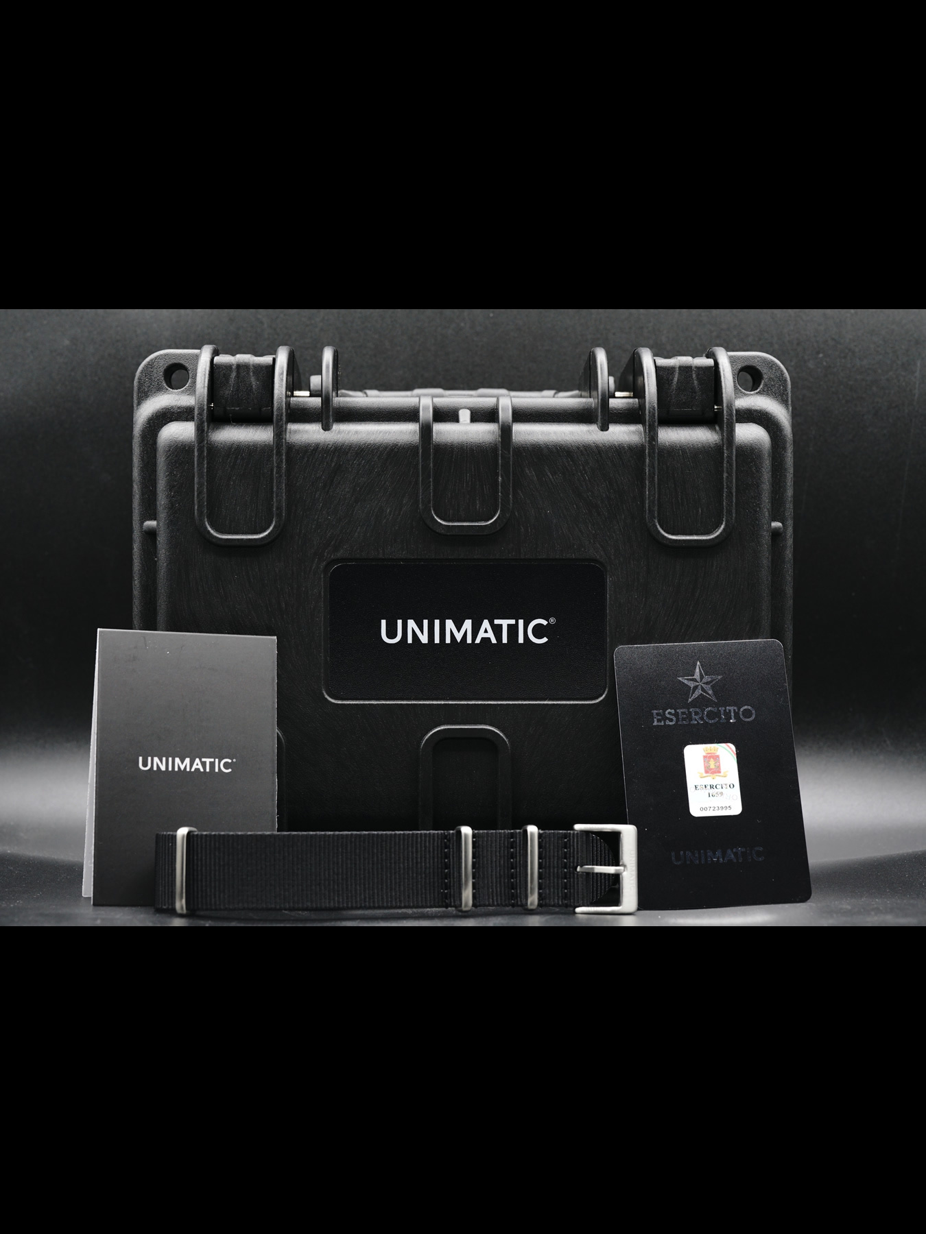 This Unimatic x Esercito Modello Uno U1-PA is in EXCELLENT condition. This watch includes its original box, digital user manual, and international warranty card. Extra black nylon NATO strap. Limited Edition of 300 pieces.Please note, the photos shown are of the actual watch you will receive.