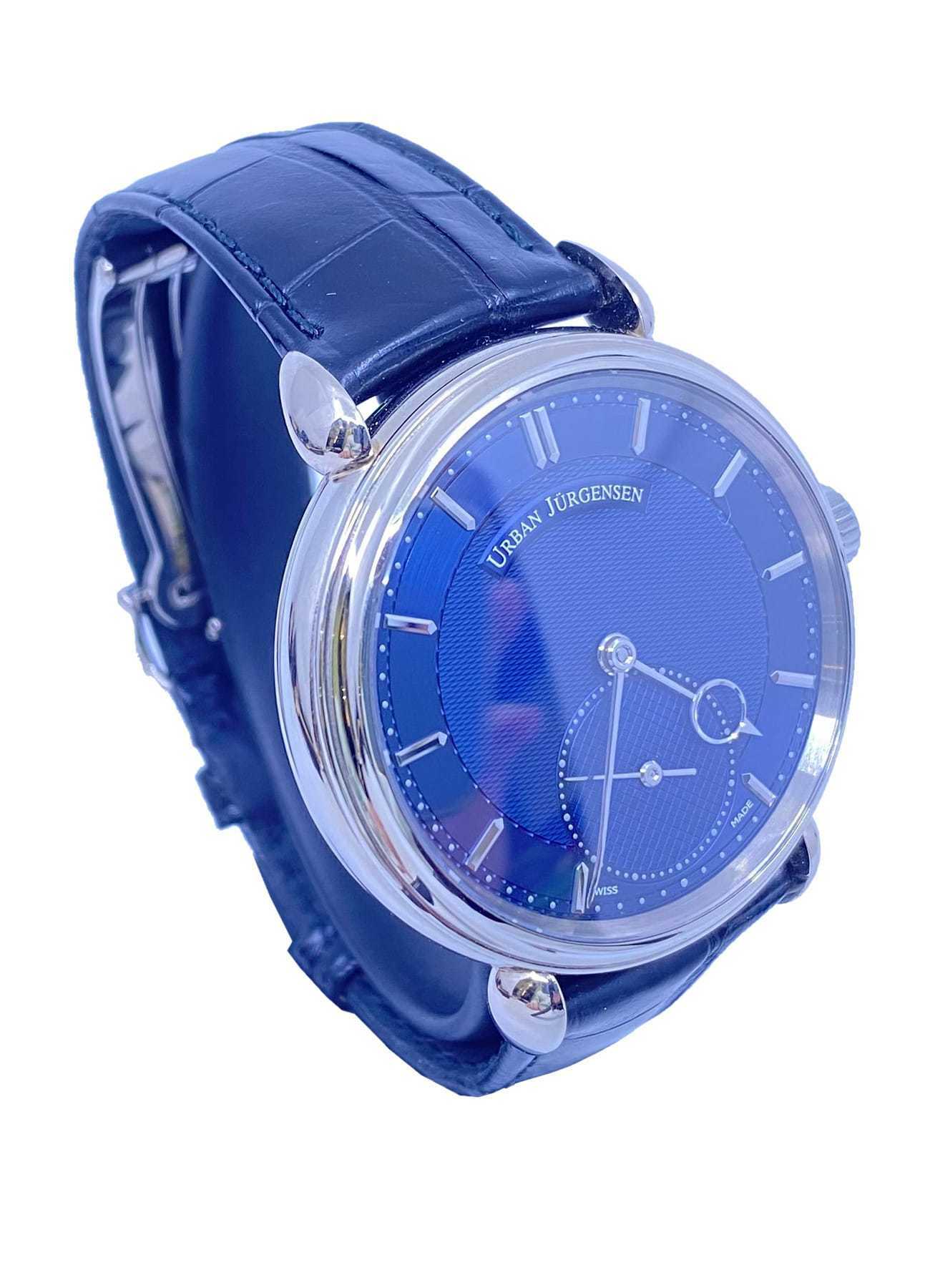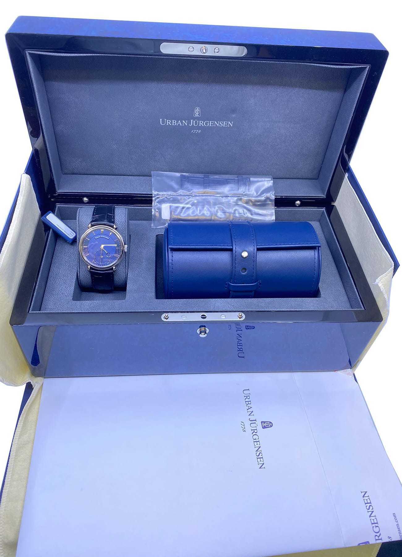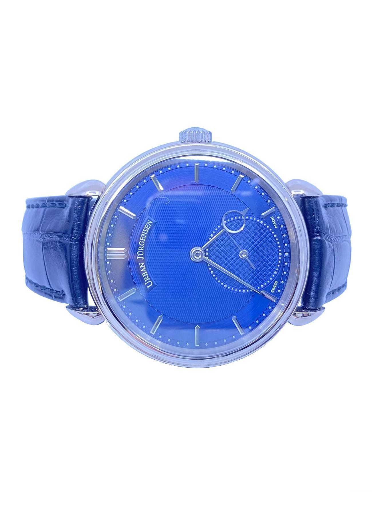 - This timepiece features a 40mm gold case paired with a high quality leather strap. It showcases a distinctive blue dial and is powered by a precise manual winding movement. The watch is designed with a water resistance of up to 30m.
