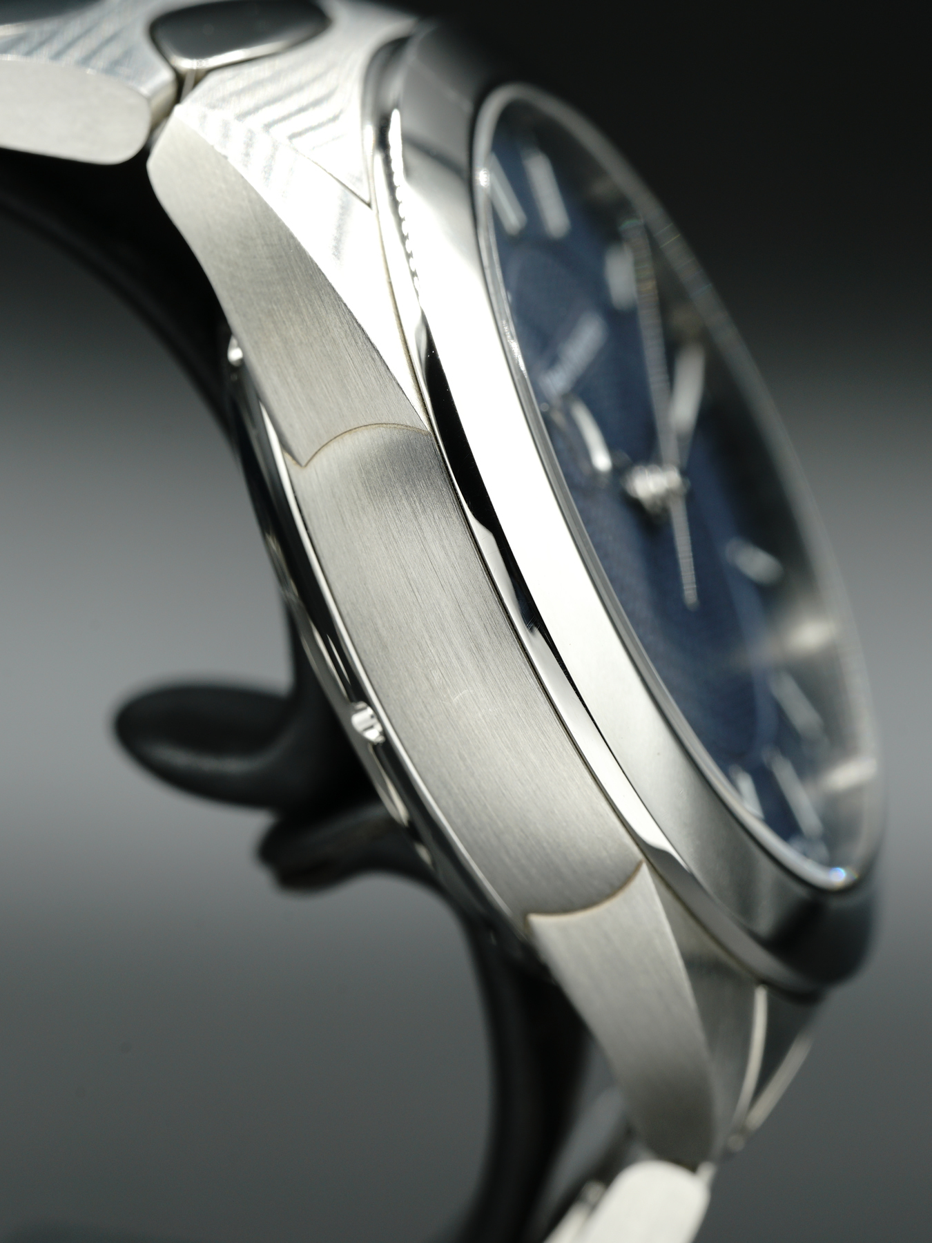 - This timepiece features a 41mm steel case paired with a high quality steel bracelet. It showcases a distinctive blue dial and is powered by a precise automatic winding movement. The watch is designed with a water resistance of up to 120m.