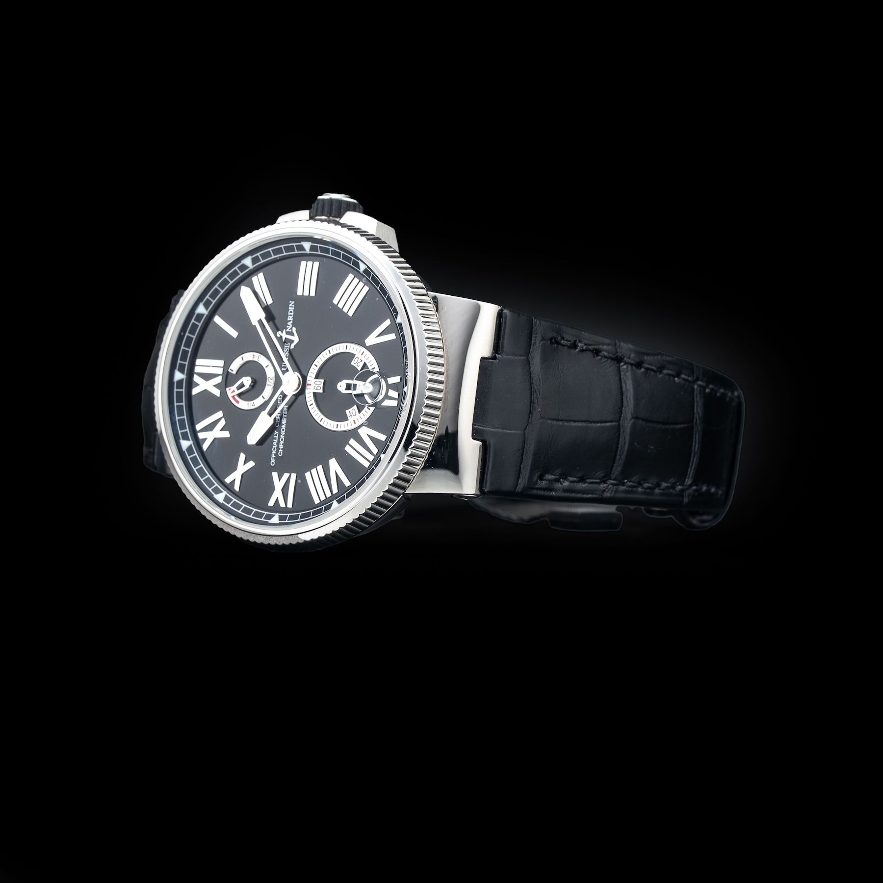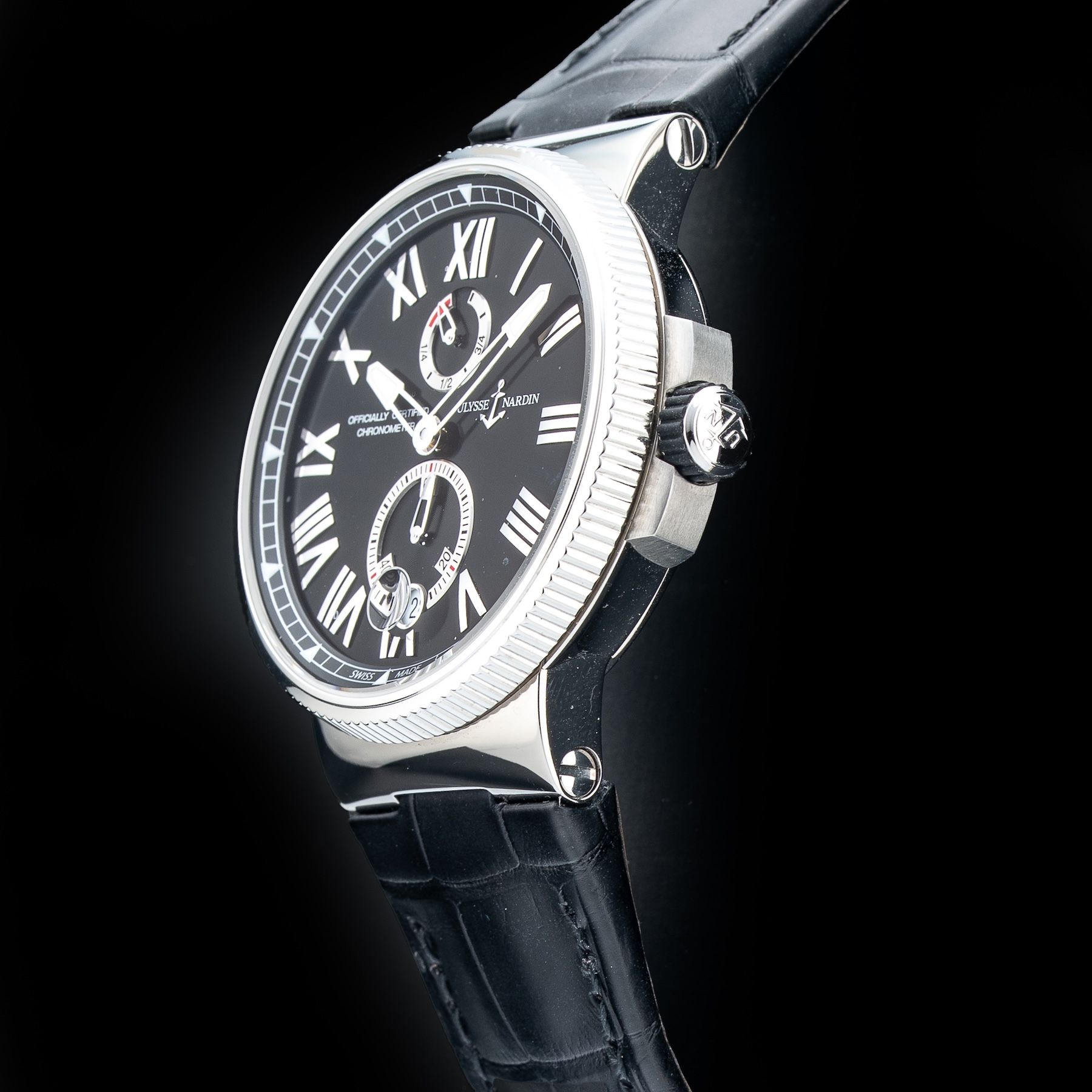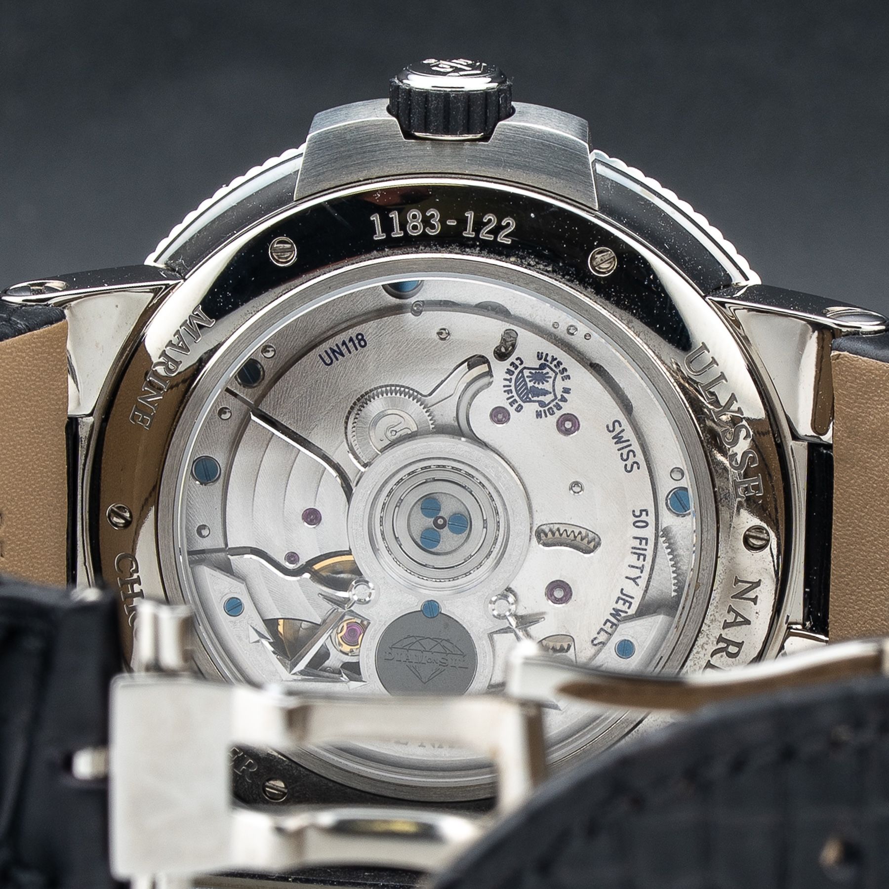 This Uylsse Nardin 1183-122/42 Marine Chronometer is in GREAT condition. This watch includes its Original Box, Original Papers and Warranty Card Not Dated. This watch has been fully authenticated and certified by Exquisite Timepieces. Please note, the photos shown are of the actual watch you will receive.