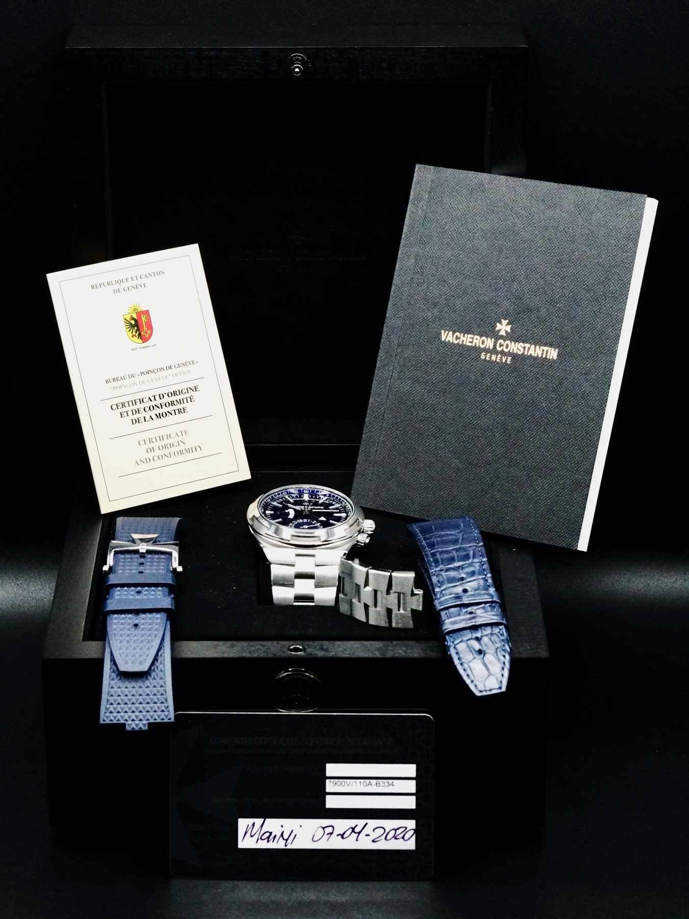 This Vacheron Constantin 7900V/110A-B334 Overseas Dual Time is in EXCELLENT condition. This watch includes its Original Box, Original Papers, Warranty Dated 2020, Extra 2 straps and Extra Link. This watch has been fully authenticated and certified by Exquisite Timepieces.