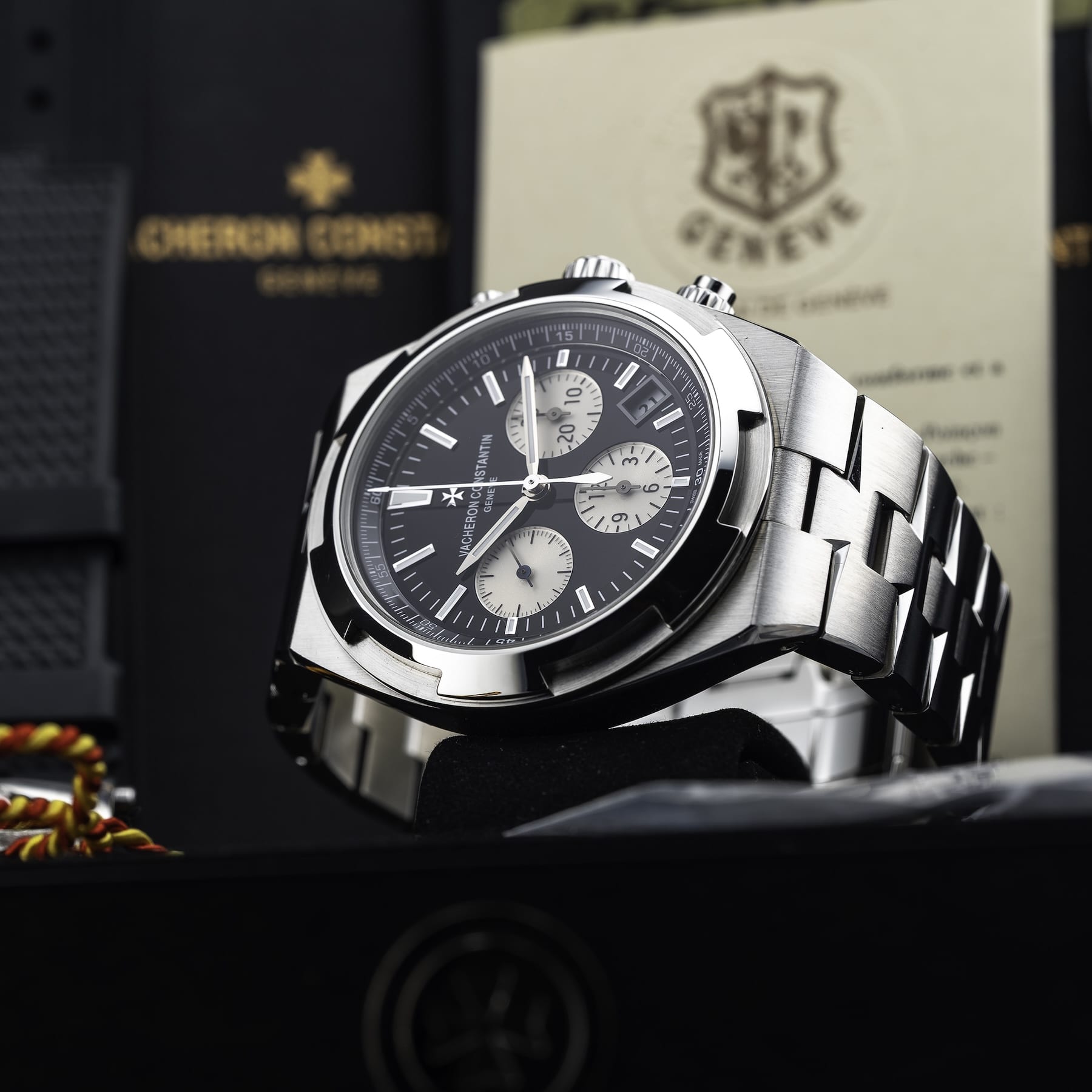 This Vacheron Constantin Overseas Chronograph Reverse Panda 5500V/110A-B481 is in GREAT condition. This watch includes its Original Box, Original Papers and Warranty Card Dated 8/18/2019. Extra Links, 2 Extra Straps. This watch has been fully authenticated and certified by Exquisite Timepieces. Please note, the photos shown are of the actual watch you will receive.