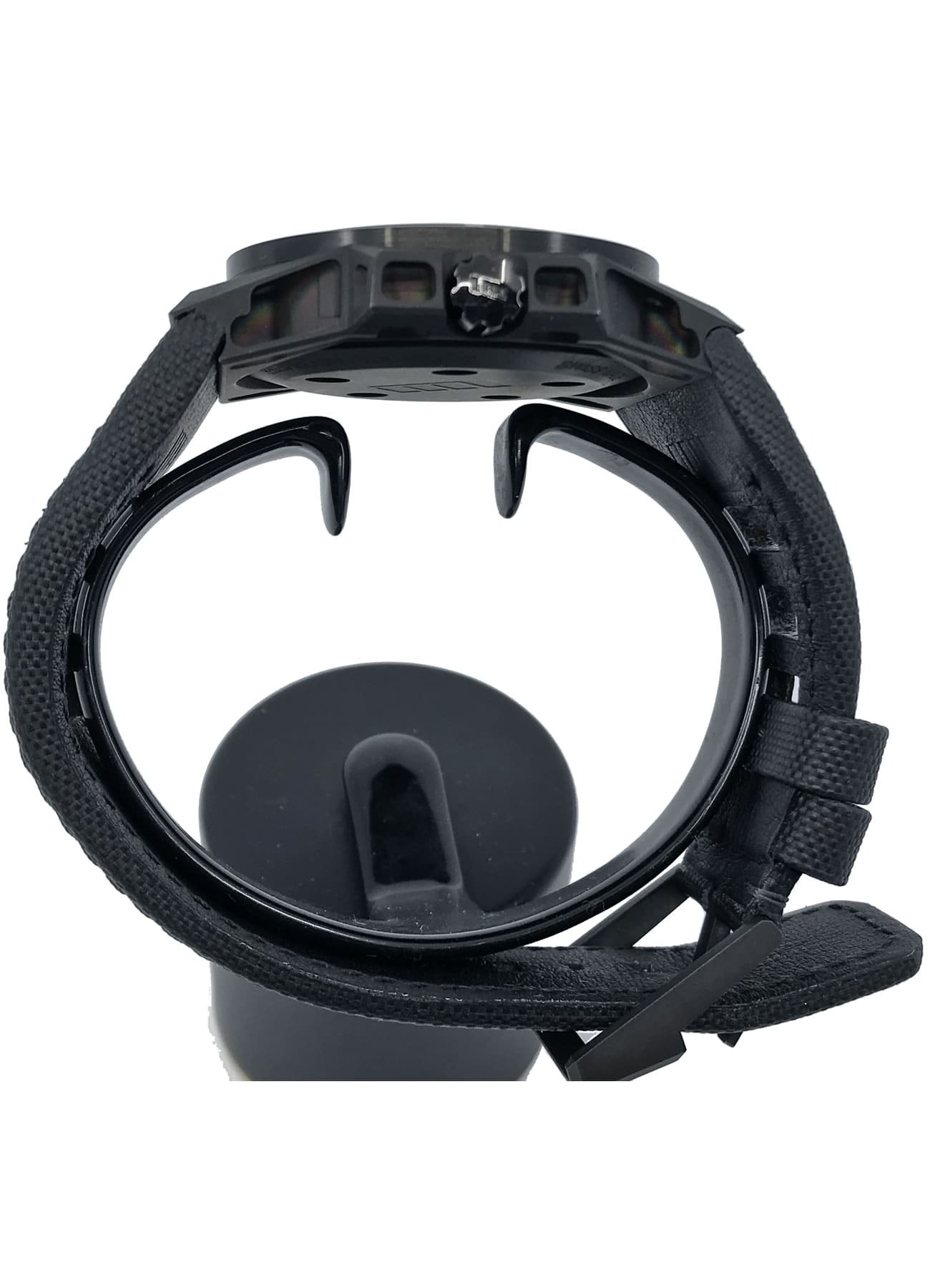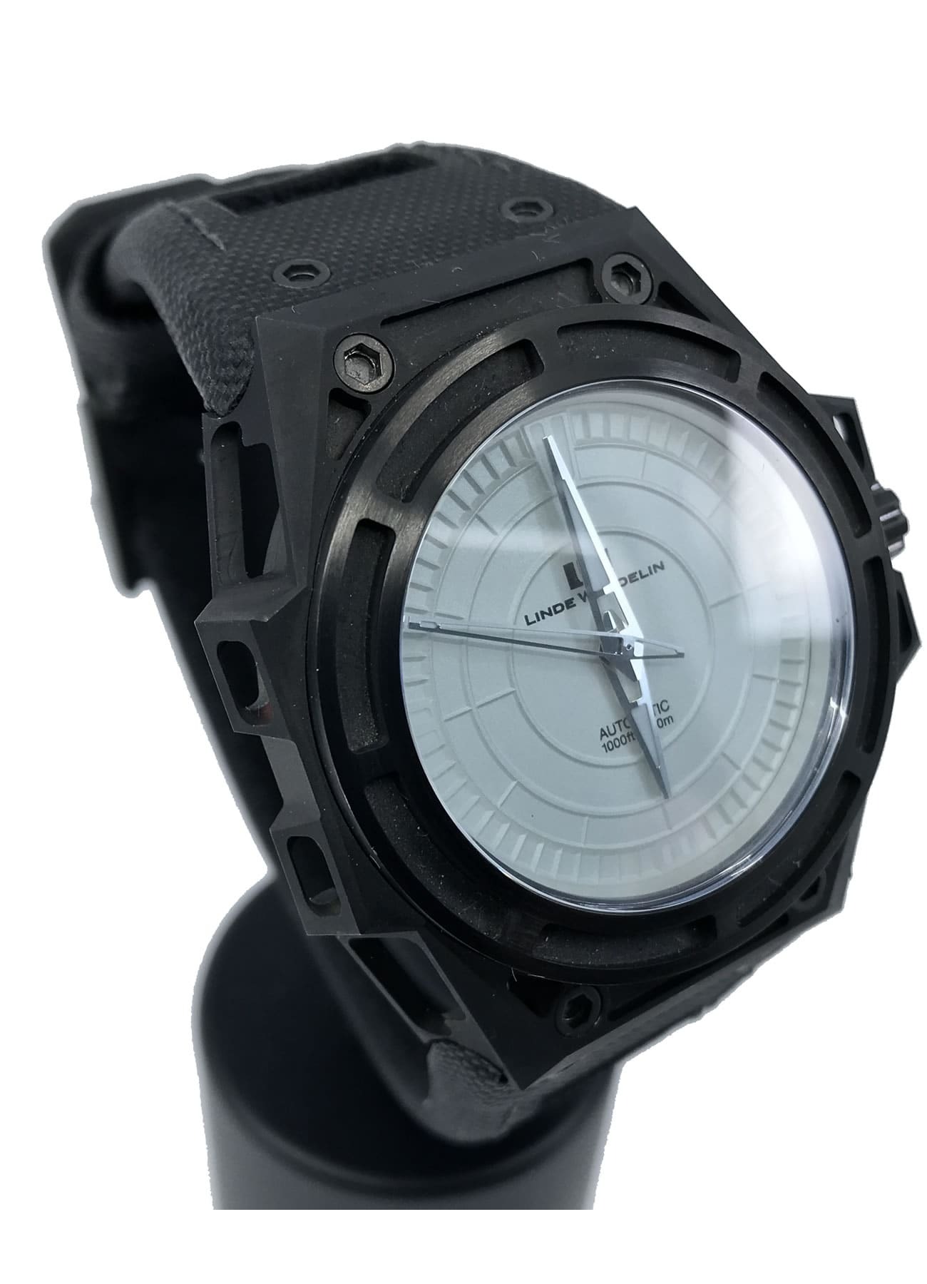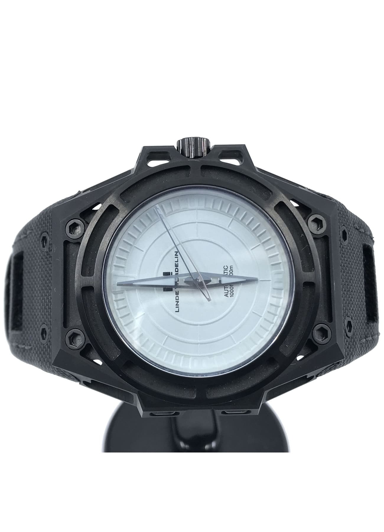 - This timepiece features a 46mm steel case paired with a high quality rubber strap. It showcases a distinctive grey dial and is powered by a precise automatic winding movement. The watch is designed with a water resistance of up to 300M.