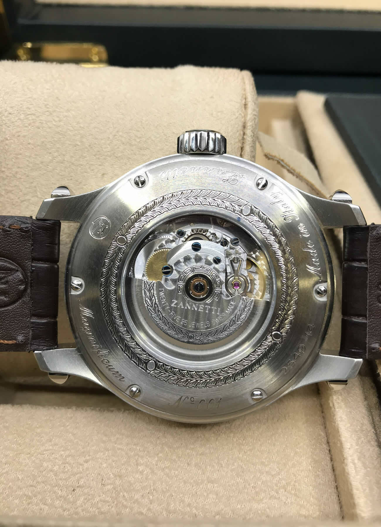 Yes, this watch comes with a Full Factory Warranty warranty directly from Zannetti.
