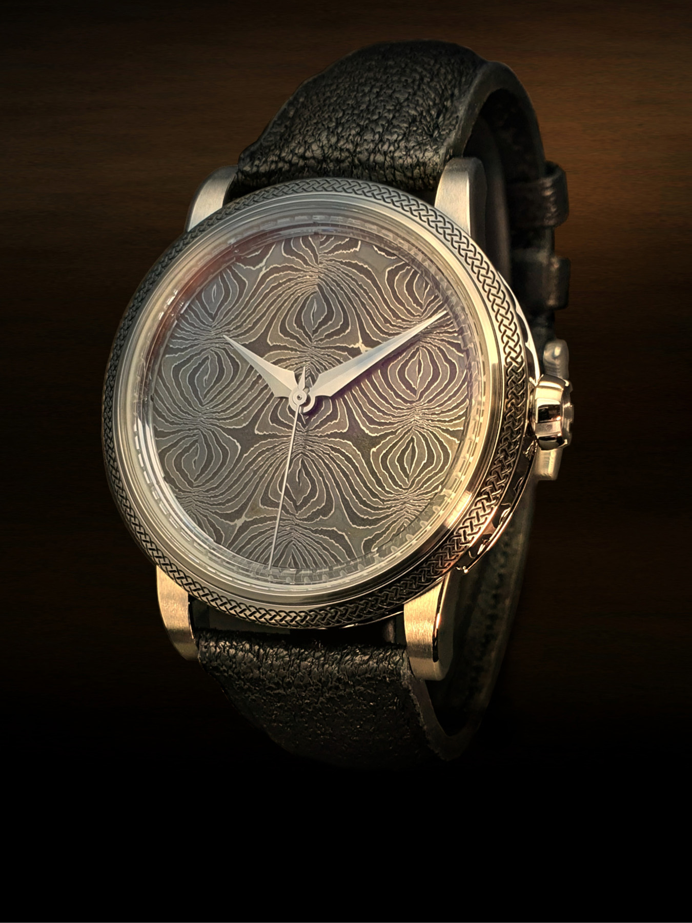 The 41.5mm stainless steel case features the GoS braided motif inspired by Viking runestones, inlaid with enamel for added depth and contrast. Inside, the watch is powered by the La Joux-Perret G101 Swiss automatic movement, meticulously customized to GoS’s standards for reliability and performance.