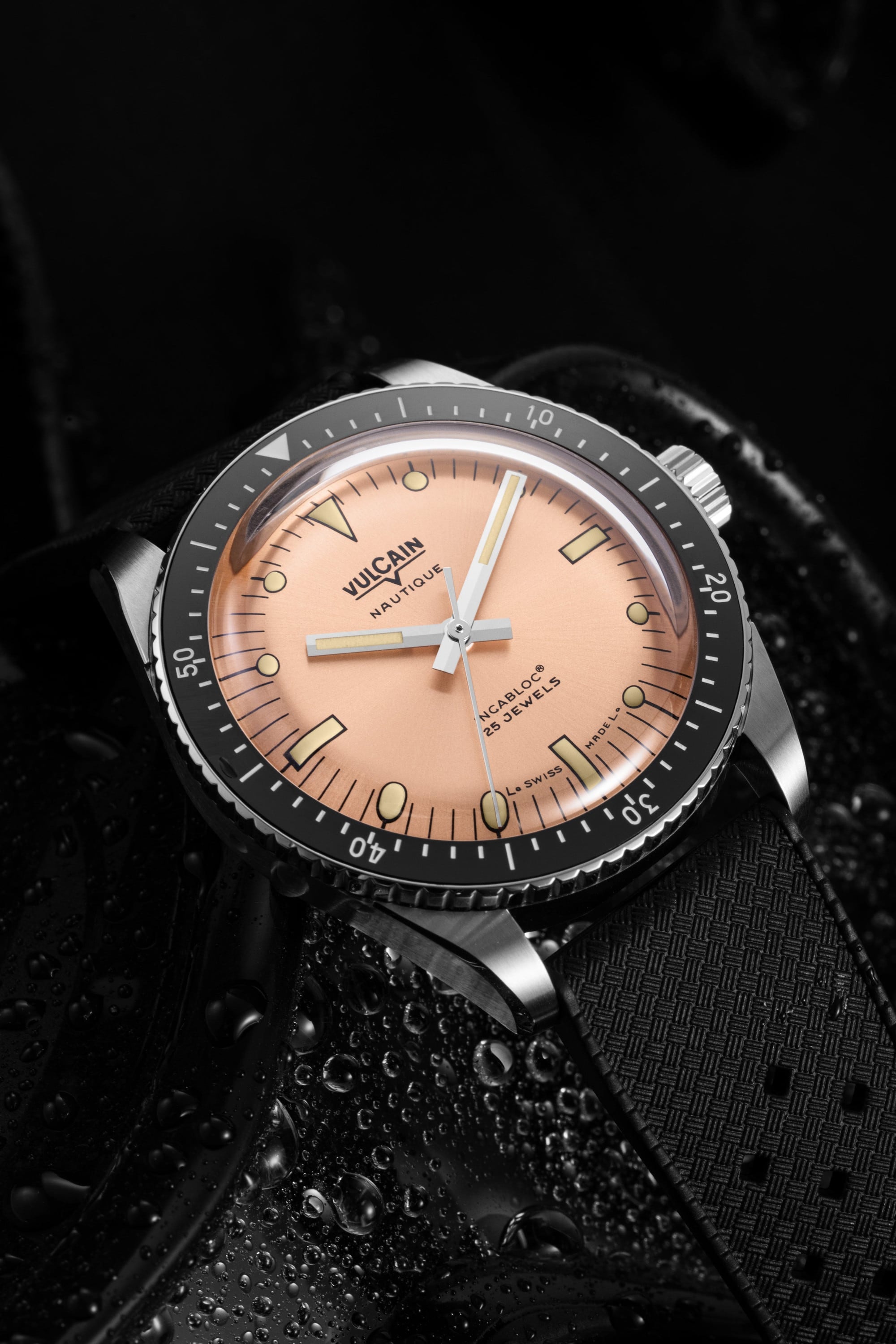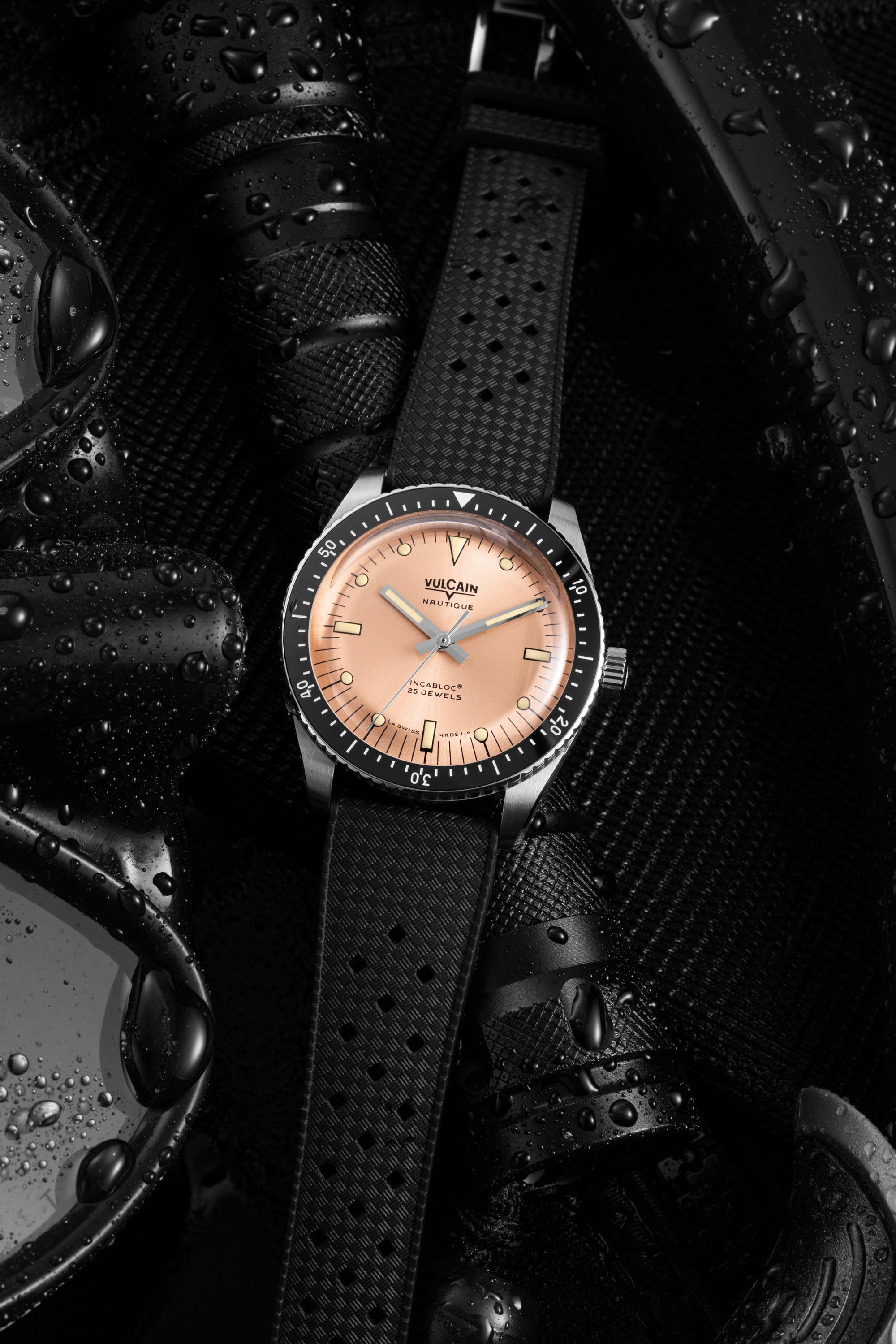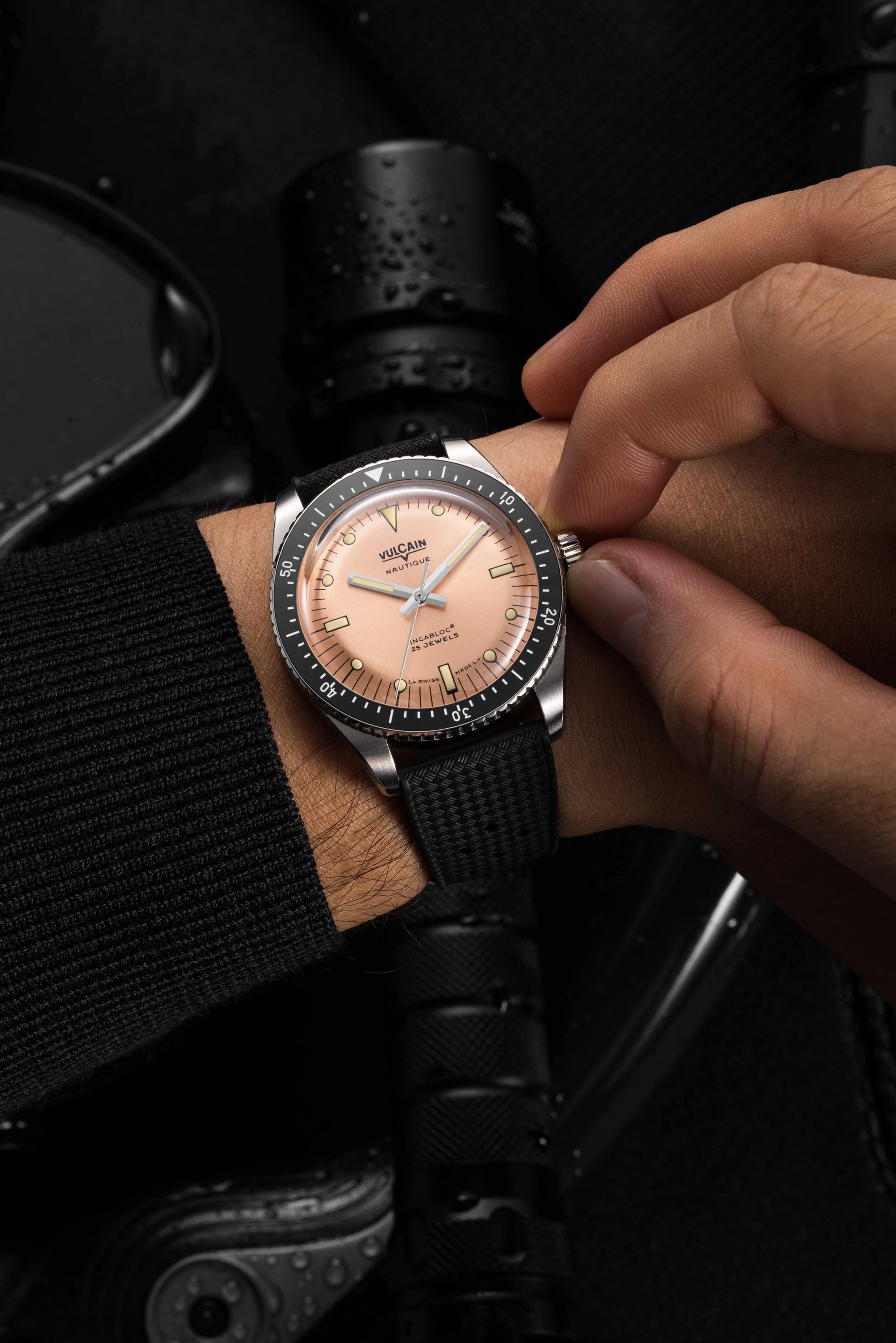 Think “Vulcain” and the first thing that comes to mind is “Cricket”. That would be selling the brand short; Vulcain is a treasure trove of watchmaking sleeping beauties that resonate with a nostalgic vibe. The SkindiverNautique is all set to make a splash in the vintage-like market. Inspired by a Vulcain model launched in 1960, it is powered by ETA’s 2824 three-hand Swiss automatic caliber with a 38-hour power reserve, the workhorse among the famed movement maker’s range of mechanical calibers.