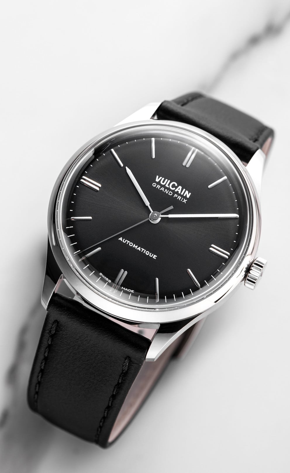 The Vulcain Grand Prix 39mm embodies elegance in its purest form. Slim and uncluttered, it tells time in the same manner, with precision both in terms of looks and functionality. Equipped with a Swiss Landeron automatic movement, the time-only watch features a domed crystal over a domed dial in true vintage style – details that place the Grand Prix squarely in the sights of those who appreciate refined watches. Its classic design and versatility make it the perfect complement to carefully curated outfits: double-breasted blazer, loafers, rakish scarf, Vulcain Grand Prix. The detail that makes the outfit perfect, anytime, anywhere.