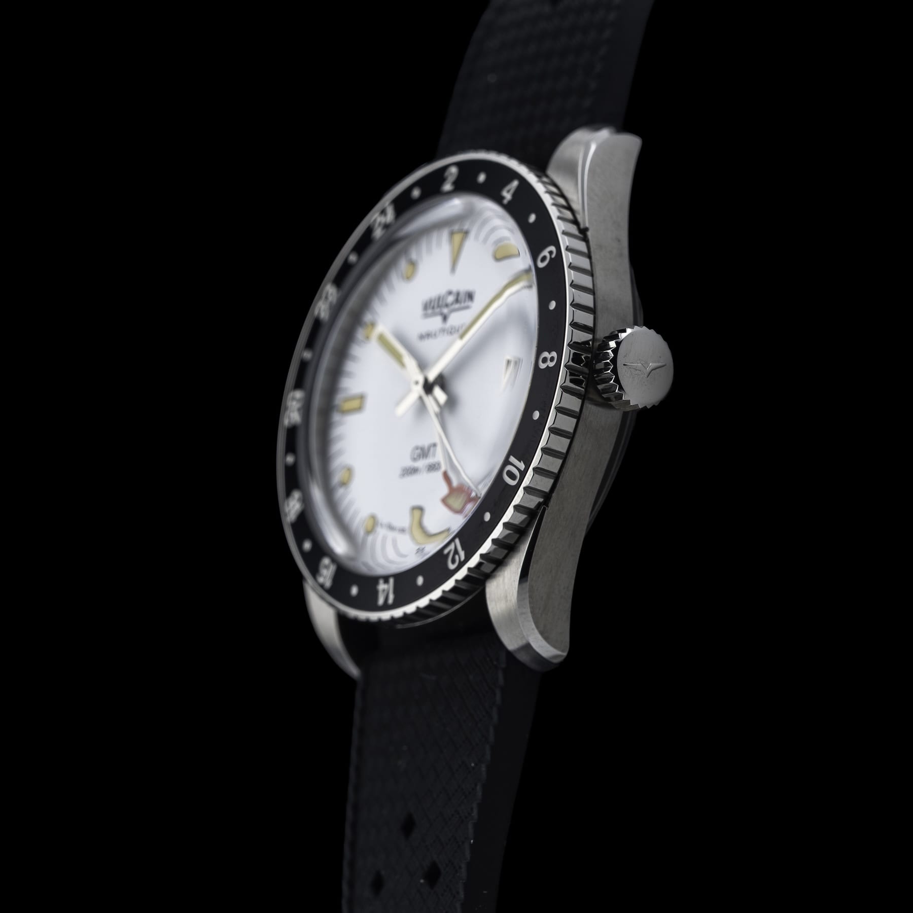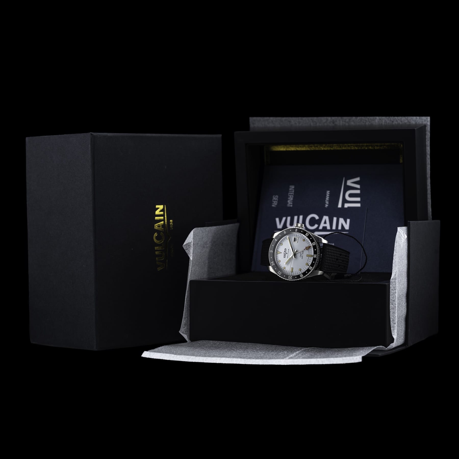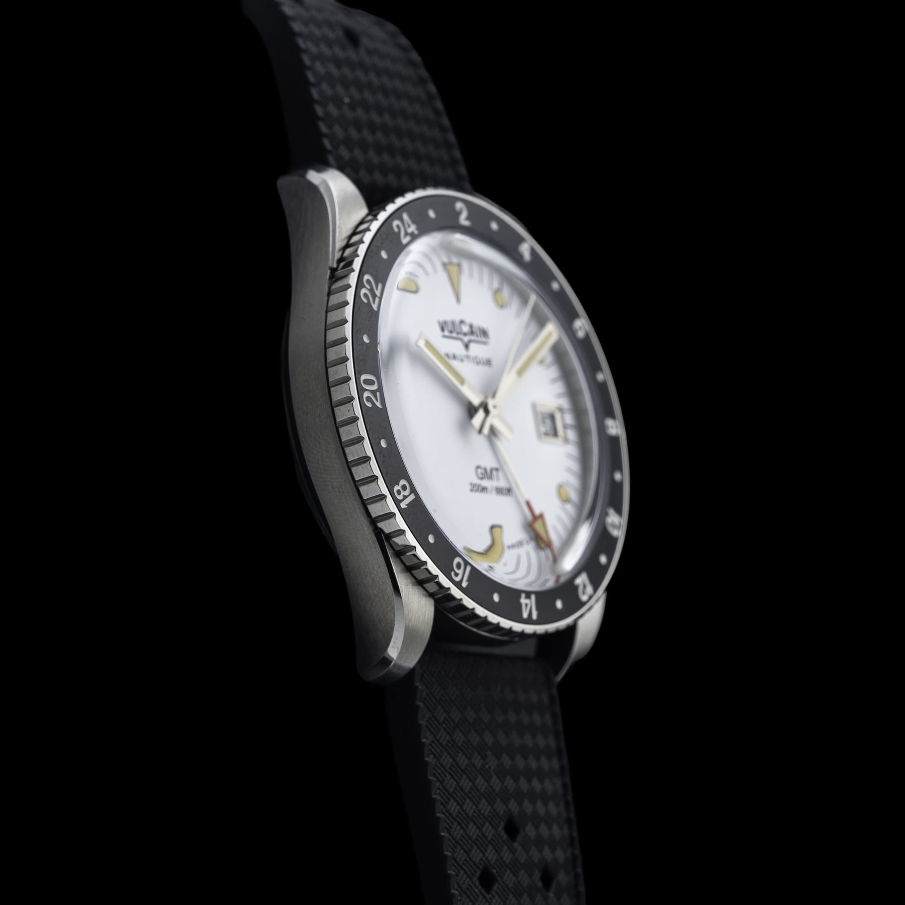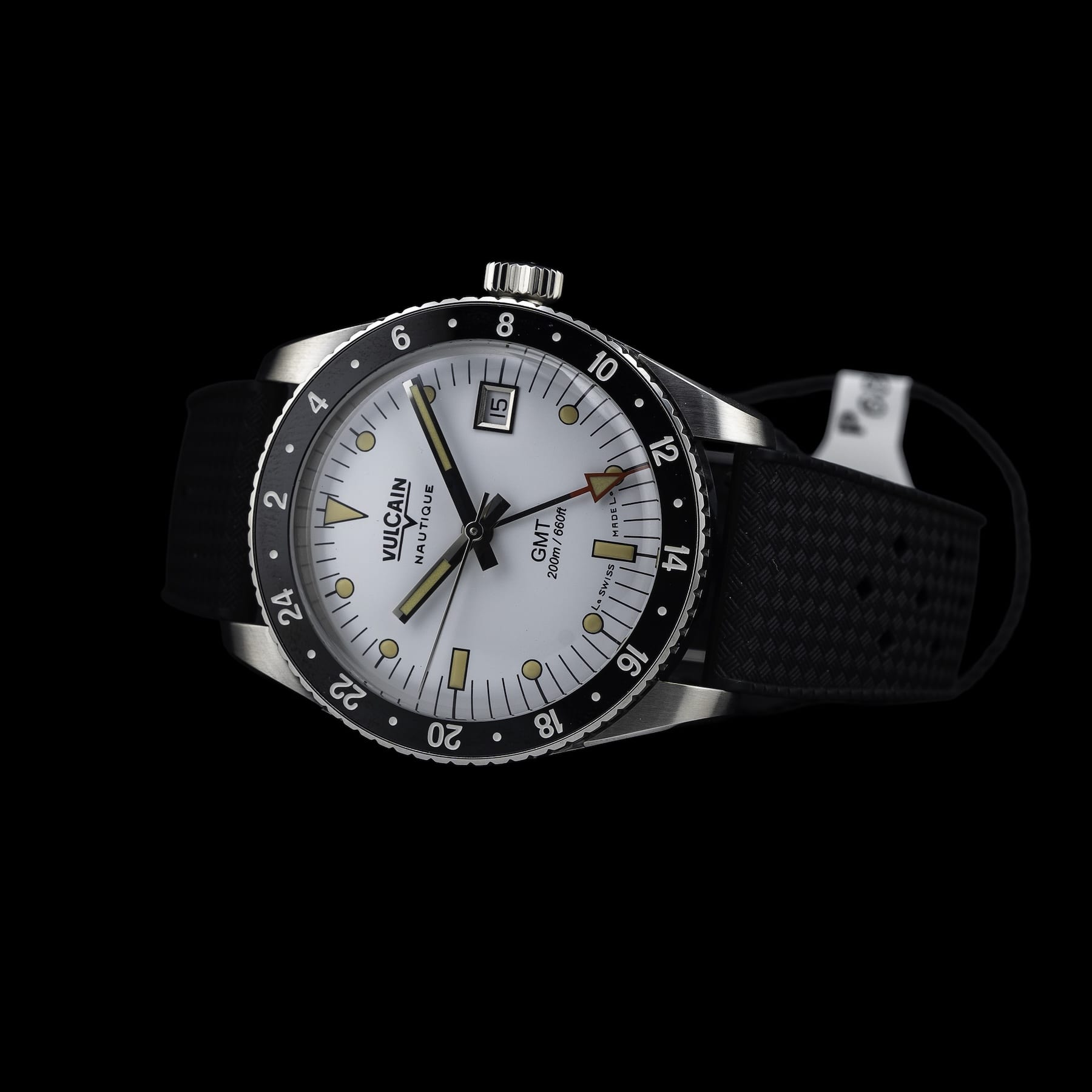 This Vulcain 680174A57.BAR200 Skindiver GMT White Luminova Beige is in GREAT condition. This watch includes its Original Box, Original Papers and Warranty Card Dated 04.15.2026. This watch has been fully authenticated and certified by Exquisite Timepieces. Please note, the photos shown are of the actual watch you will receive.