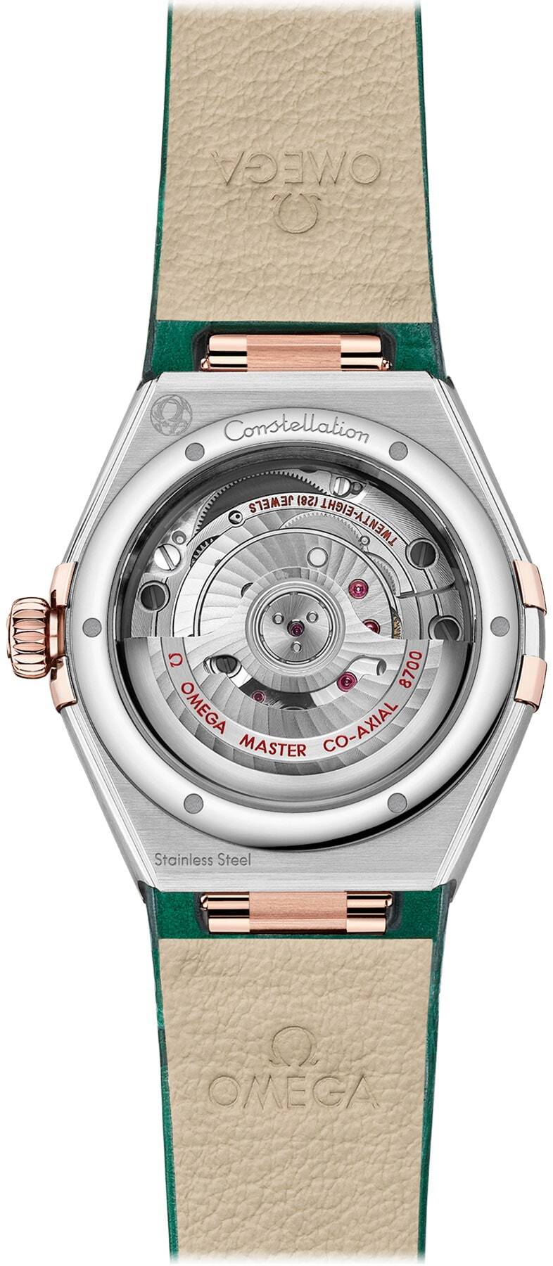At the heart of this timepiece is the OMEGA Co-Axial Master Chronometer Calibre 8700, visible through the domed scratch-resistant sapphire crystal.