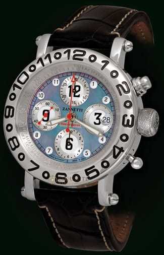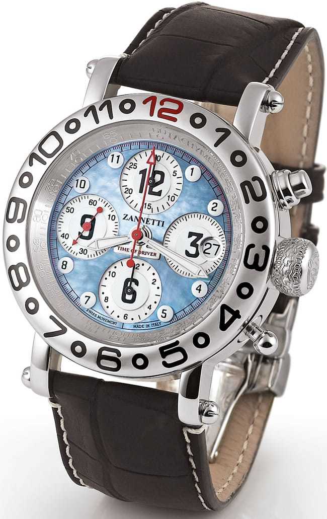 Chronograph Valjoux cal. 7750 movement, double layer natural blue mother- of pearl