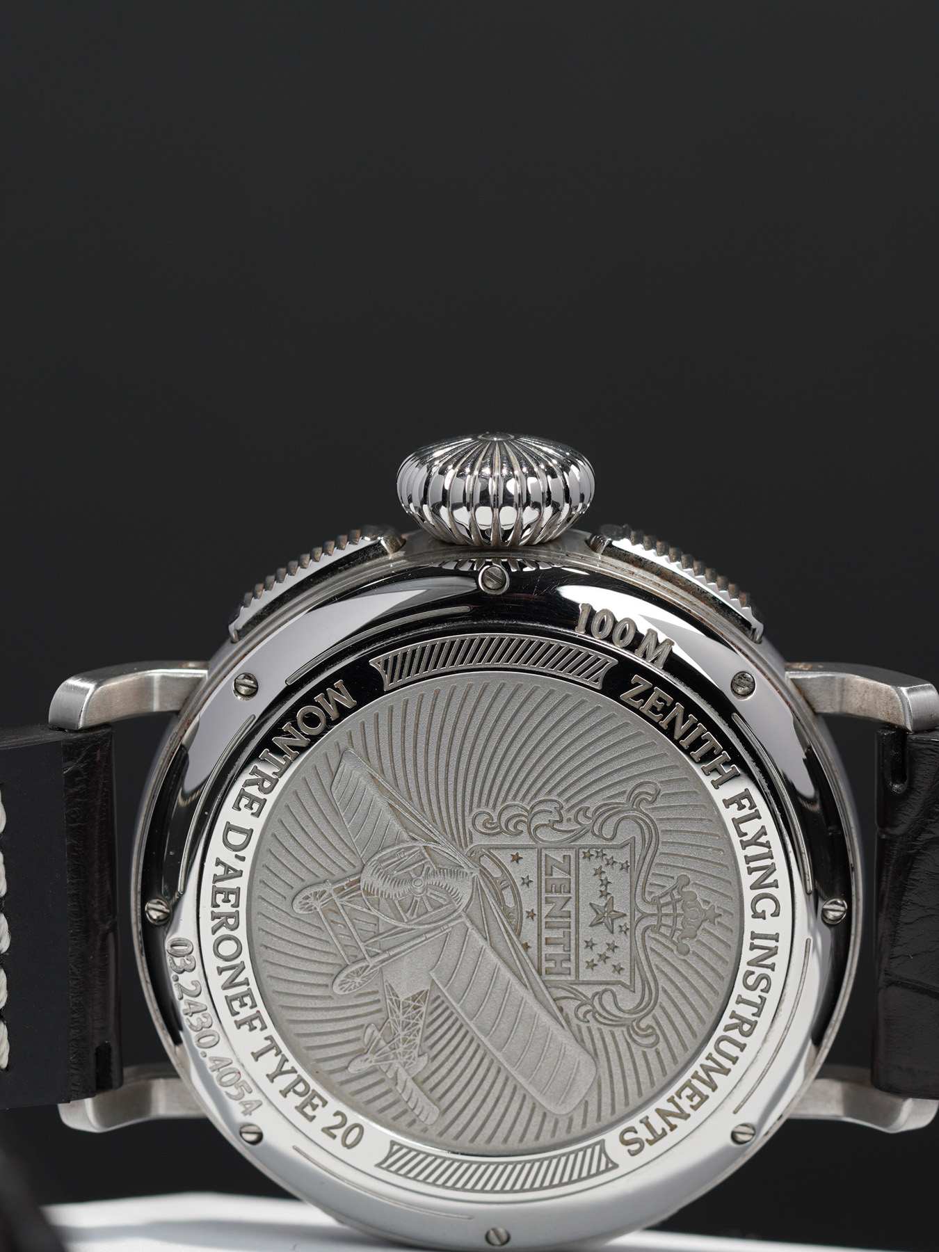 This Zenith 03.2430.4054/21 Pilot Montre d'Aeronef Type 20 Annual Calendar is in GREAT condition. it has boxes, papers and warranty card dated 4/29/14. This watch has been fully authenticated and certified by Exquisite Timepieces.