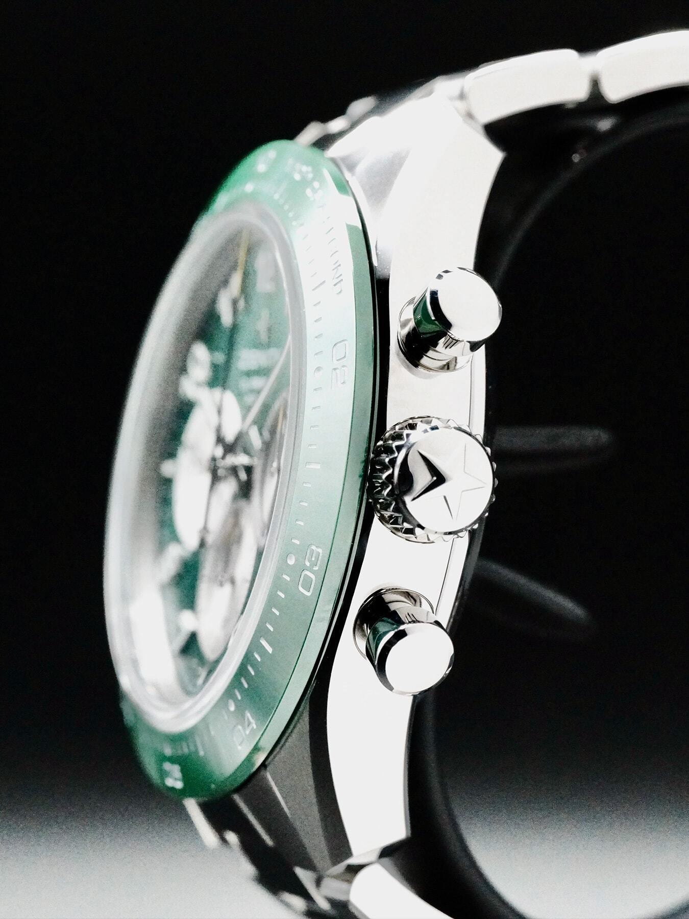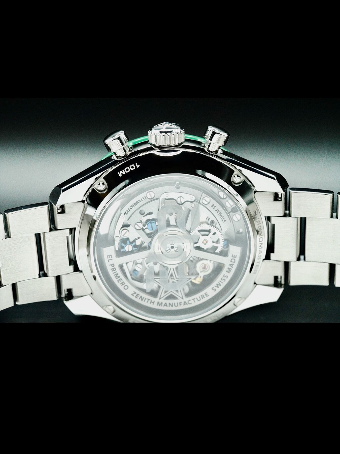 This watch features a 41 mm stainless steel case and bracelet. This watch also sports a green dial. Powered by a El Primero movement. Water resistance up to 100 meters.
