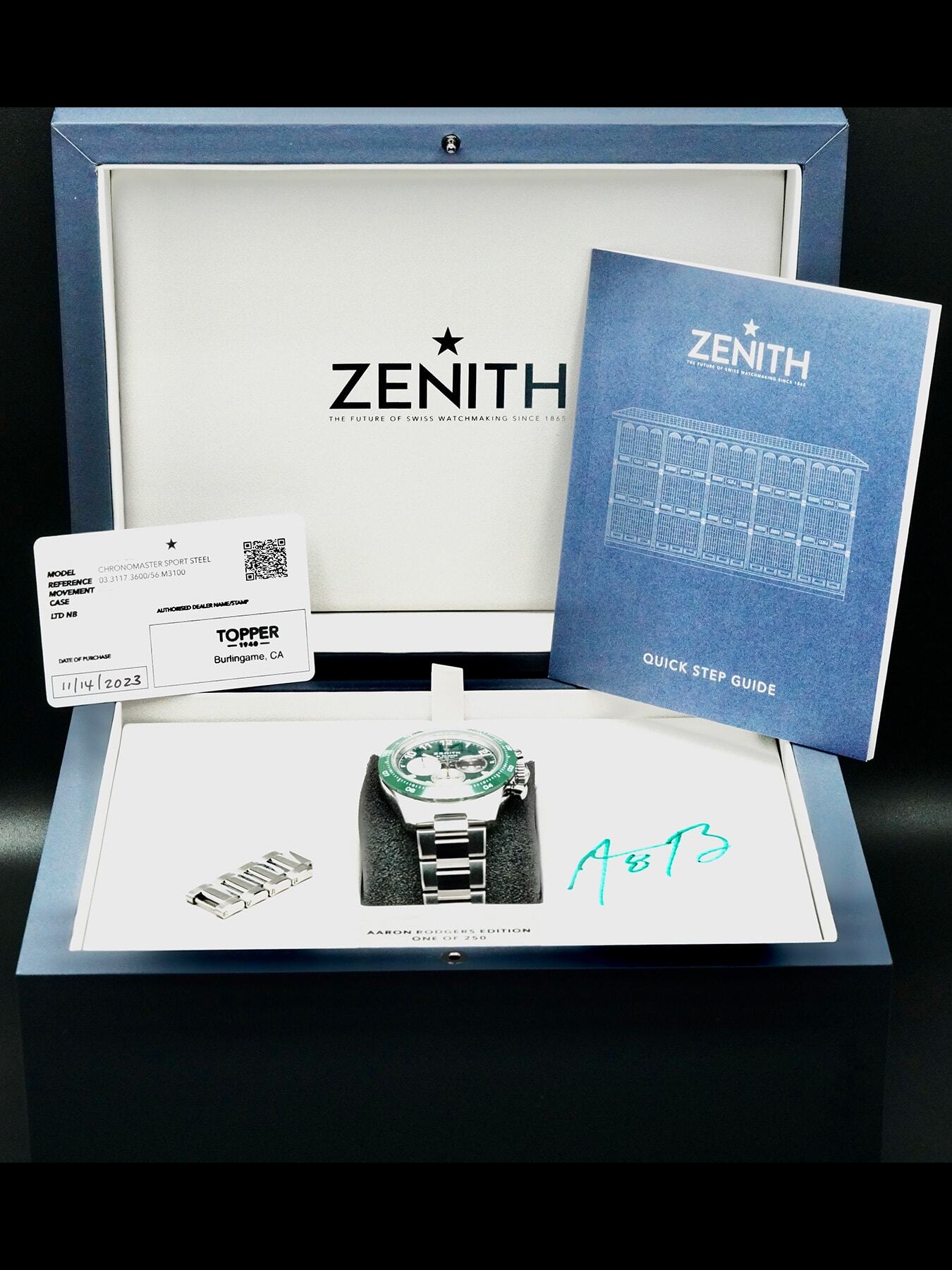 This Zenith 03.3117.3600/56.M3100 Chronomaster Sport is in EXCELLENT condition. This watch includes its Original Box, Original Papers, Warranty Card Dated 2023. Extra bracelet links This watch has been fully authenticated and certified by Exquisite Timepieces.