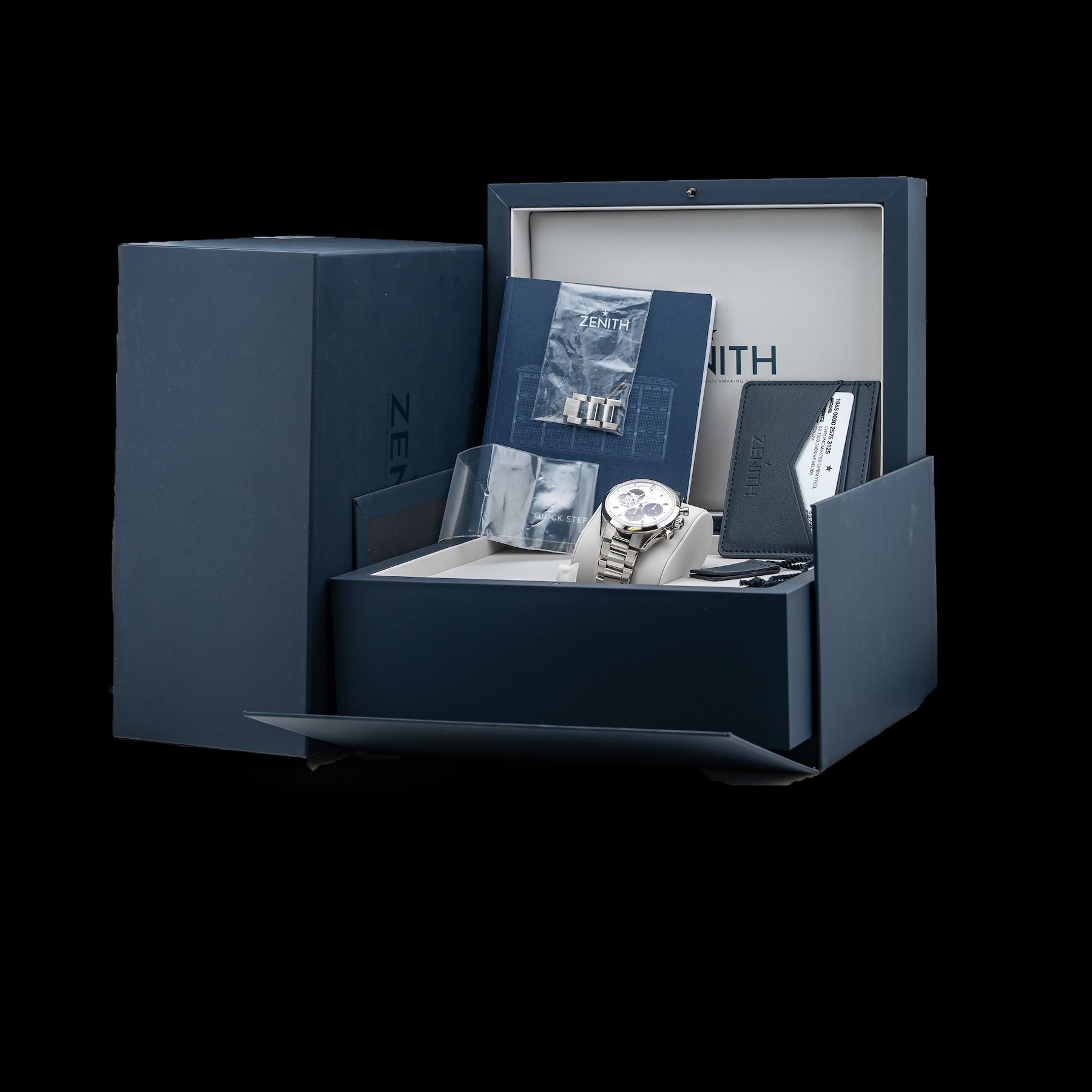 This Zenith Chronomaster 03.3300.3604 69.M3300 White Dial is in GREAT condition. This watch includes its Original Box, Original Papers and Warranty Card Dated 09/28/2023, Extra Links. This watch has been fully authenticated and certified by Exquisite Timepieces. Please note, the photos shown are of the actual watch you will receive.