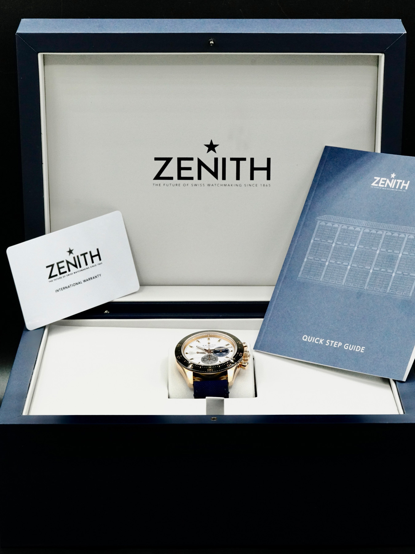 This Zenith 18.3100.3600/69.C920 Zenith Chronomaster Sport is in EXCELLENT condition. It has box, instruction book, warranty card no dated.