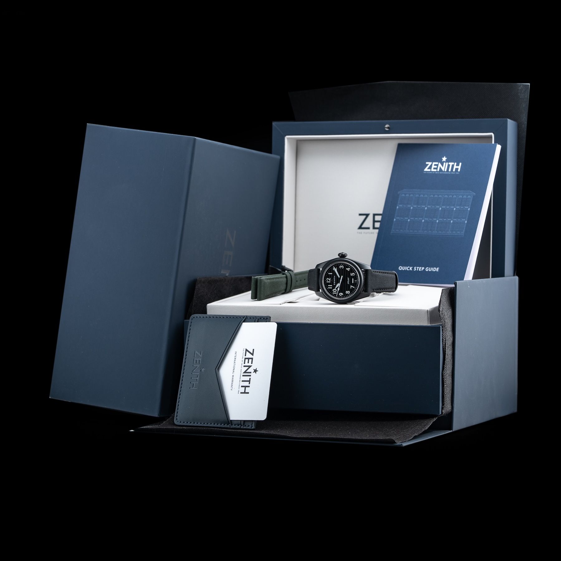This Zenith Pilot 49.4000.3620/21.I001 is in GREAT condition. This watch includes its Original Box, Original Papers and Warranty card dated 02/14/2025. This watch has been fully authenticated and certified by Exquisite Timepieces. Please note, the photos shown are of the actual watch you will receive.
