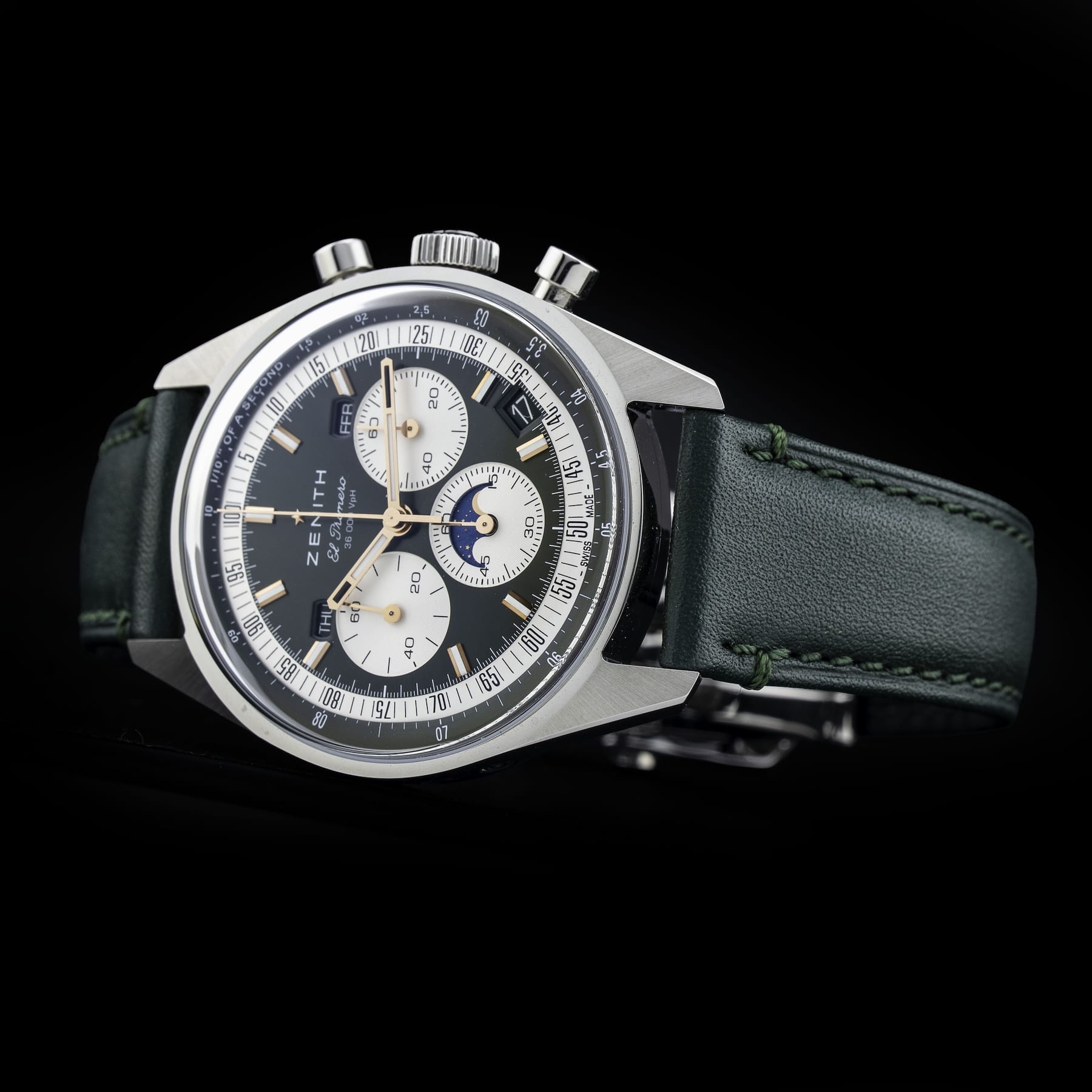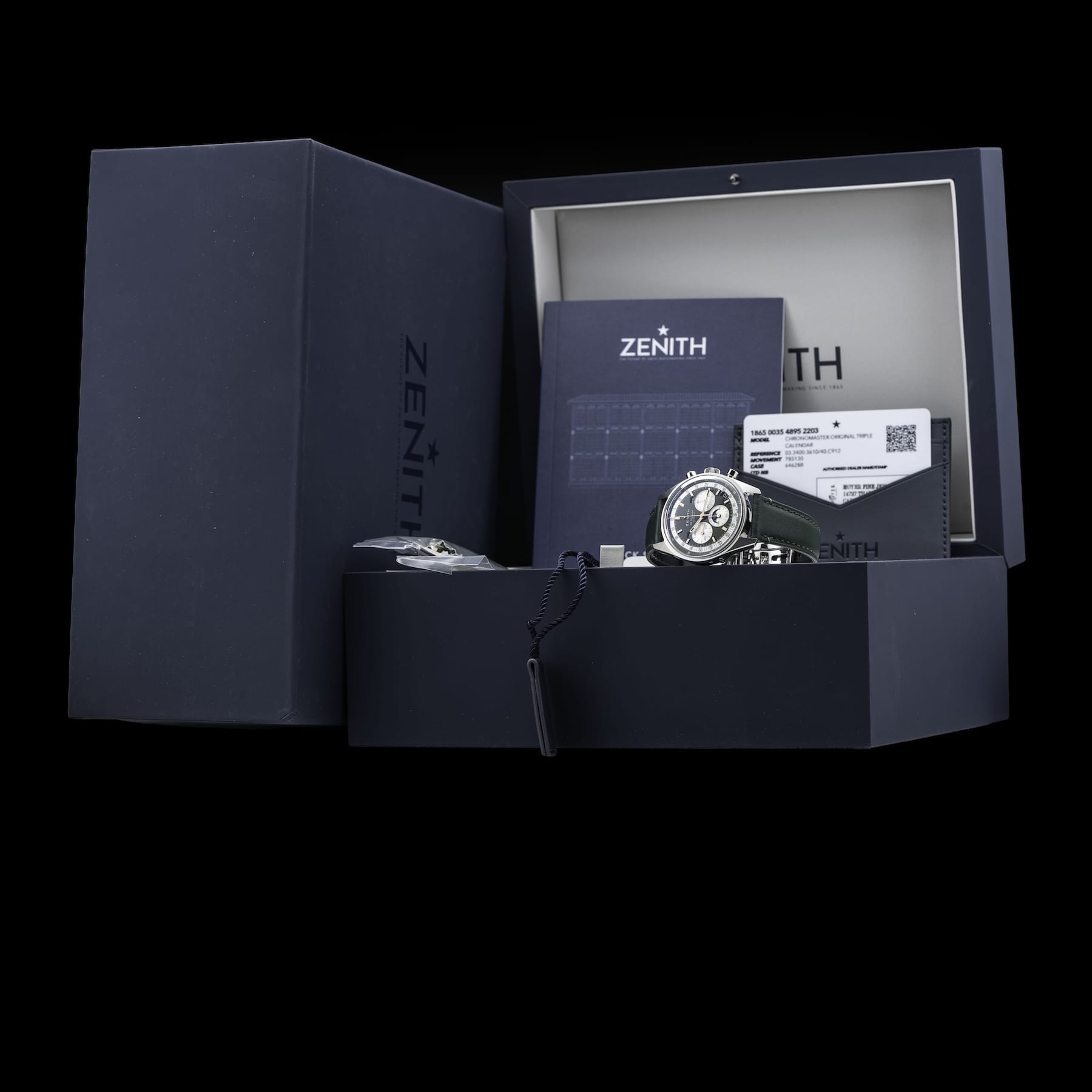 This Zenith Chronomaster Original 03.3400.3610/40.C912 is in GREAT condition. This watch includes its Original Box, Original Papers and Warranty Card Dated 11/29/25. This watch has been fully authenticated and certified by Exquisite Timepieces. Please note, the photos shown are of the actual watch you will receive.