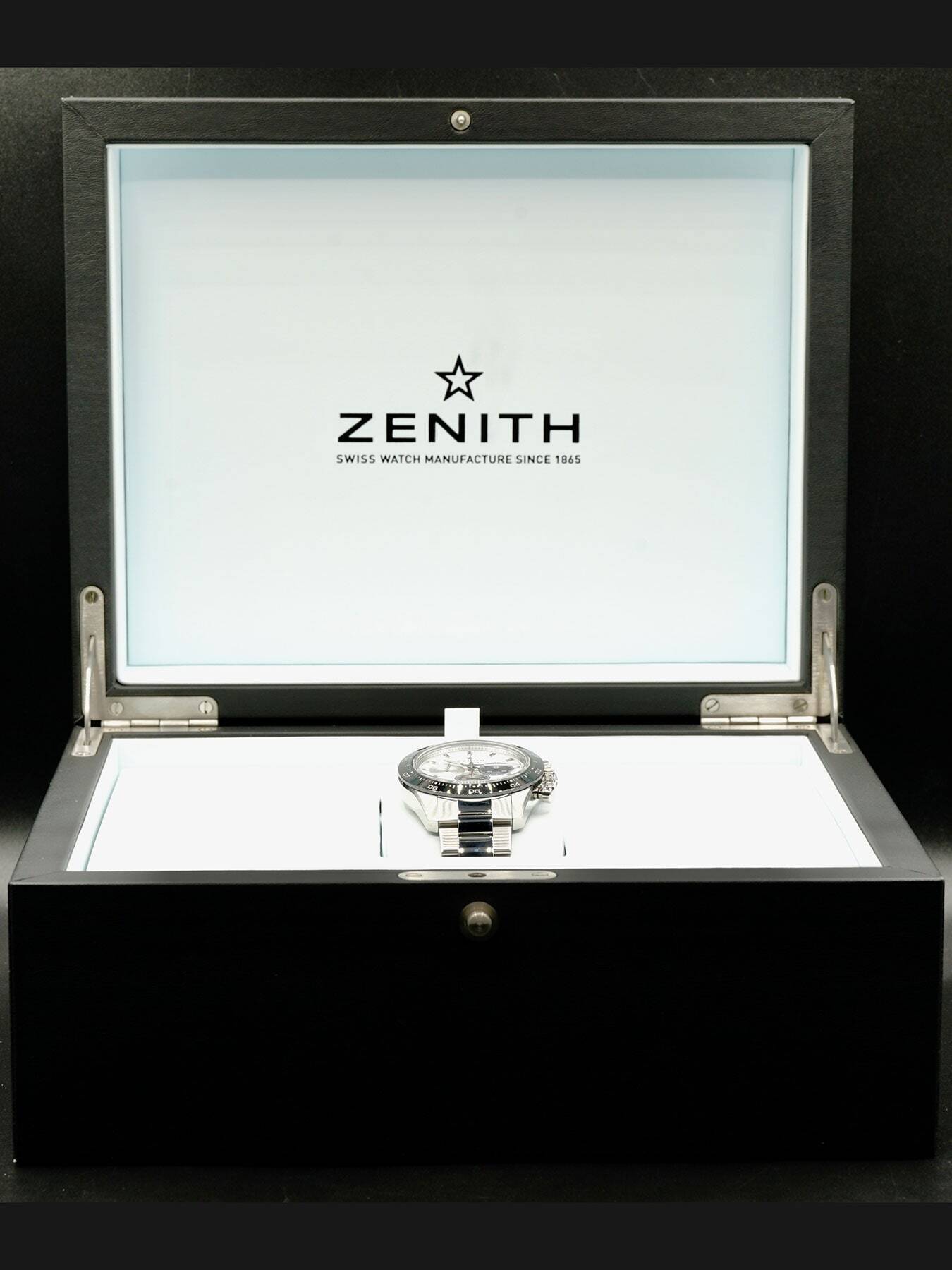 This Zenith Chronomaster Sport 03.3100.3600/69.M3100 is in EXCELLENT condition. This watch includes its original box, quick step guide, and international warranty card dated for March 2021.