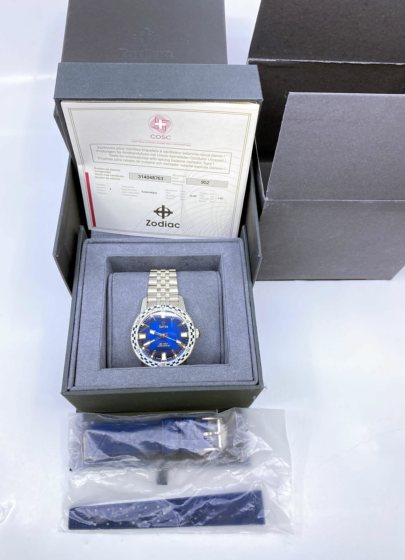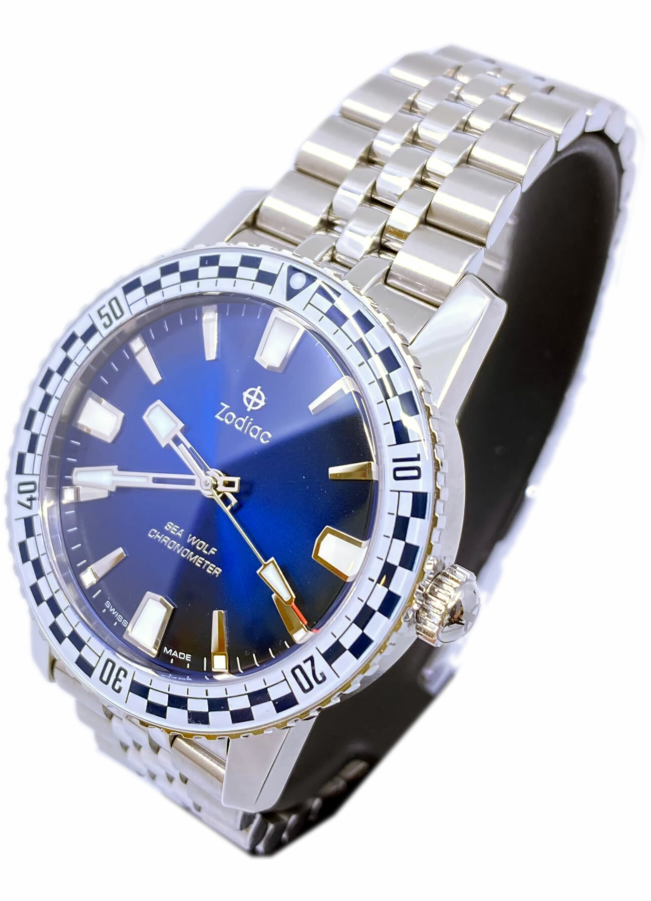- This timepiece features a 40mm steel case paired with a high quality steel bracelet. It showcases a distinctive blue dial and is powered by a precise automatic winding movement. The watch is designed with a water resistance of up to 200m.