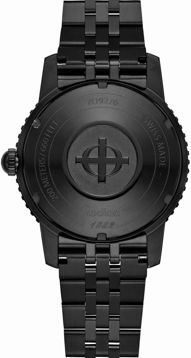Bolder and more elegant than ever before, this edition of the classic Super Sea Wolf 53 features a black plated stainless steel case and bracelet. Featuring a uni-directional mineral crystal topring, black sunray dial and white lume hands that glow bright blue, Sea Wolf conveys the brand's commitment to definitive style with timeless roots. The STP 3-13 automatic movement and sapphire crystal with anti-reflective coating stay true to the quality and style of ZODIAC.