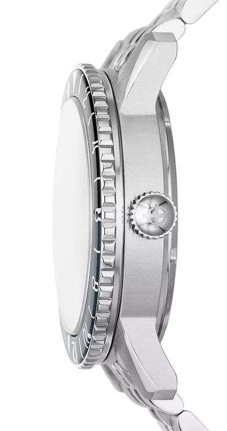 Zodiac's 40mm Super Sea Wolf GMT watch features a silver sunray dial, STP 7-20 Automatic movement and stainless steel bracelet.