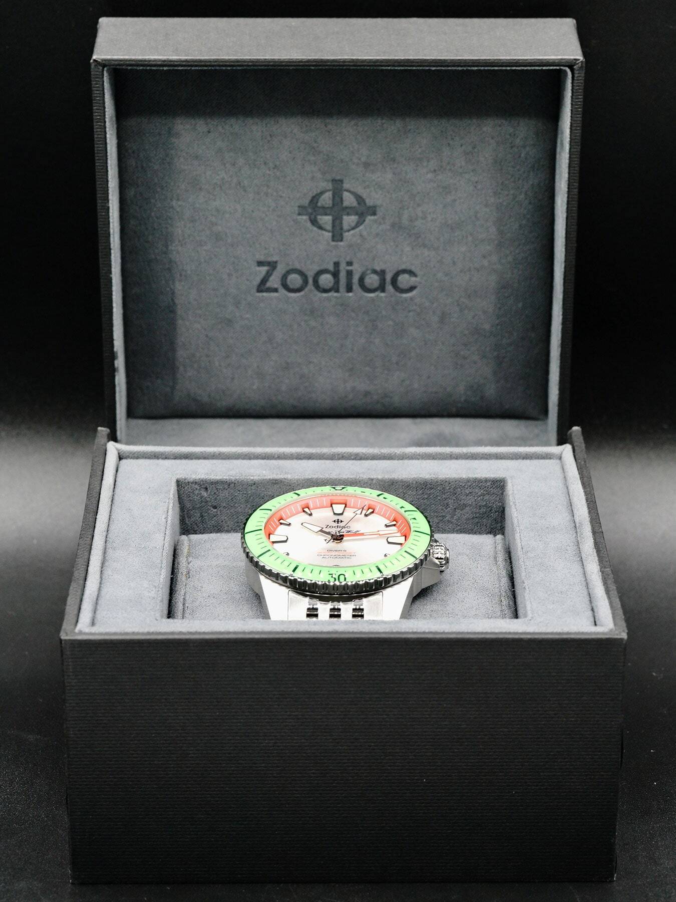 This Zodiac Super Sea Wolf Pro-Diver ZO3556 is in EXCELLENT condition. This watch includes its original box, instruction manual, and is COSC certified. Extra stainless steel bracelet links.