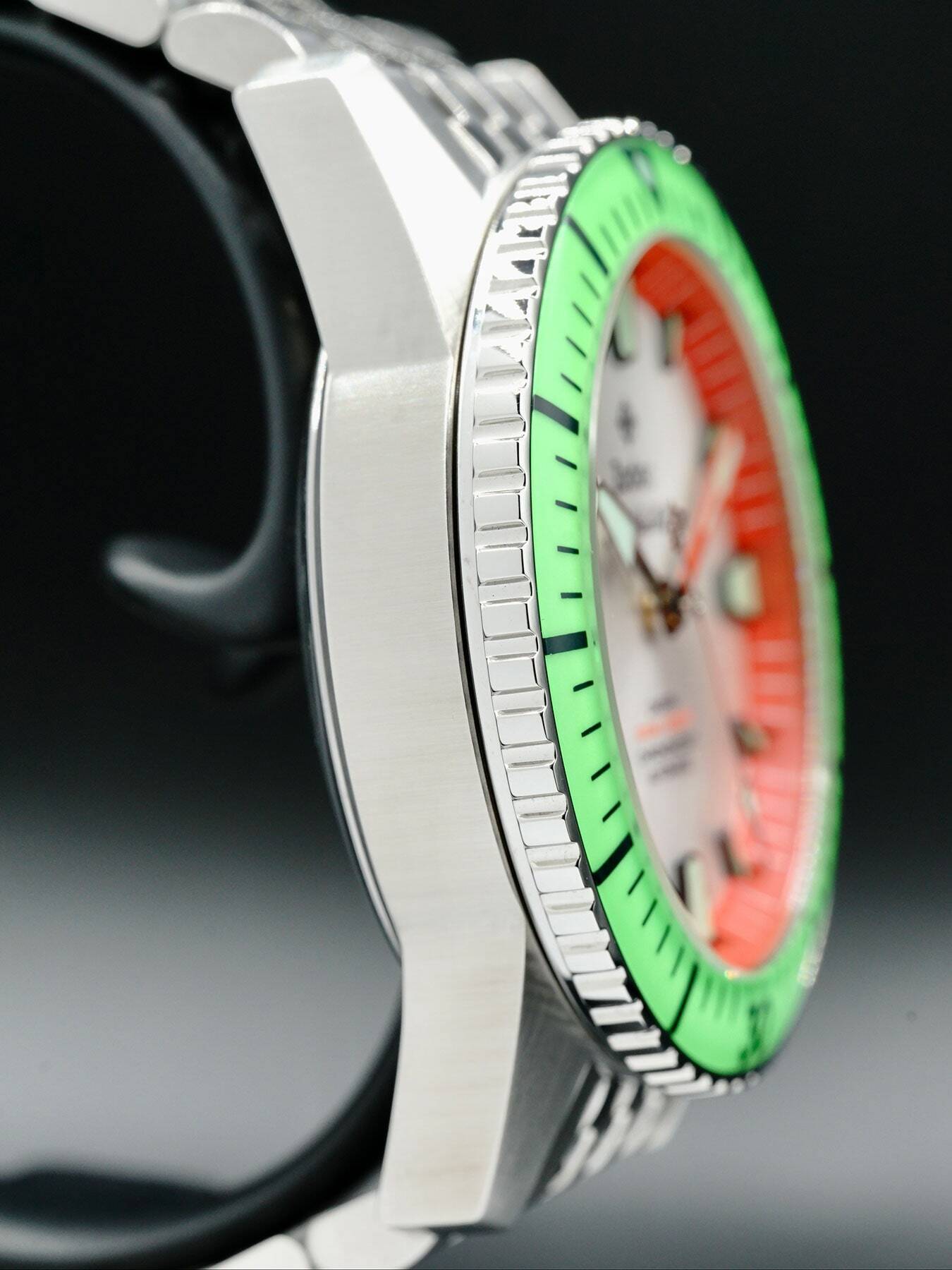 Automatic movement powered by Sellita SW200-1 with a power reserve of approximately 38 hours. Water resistance up to 300 meters.