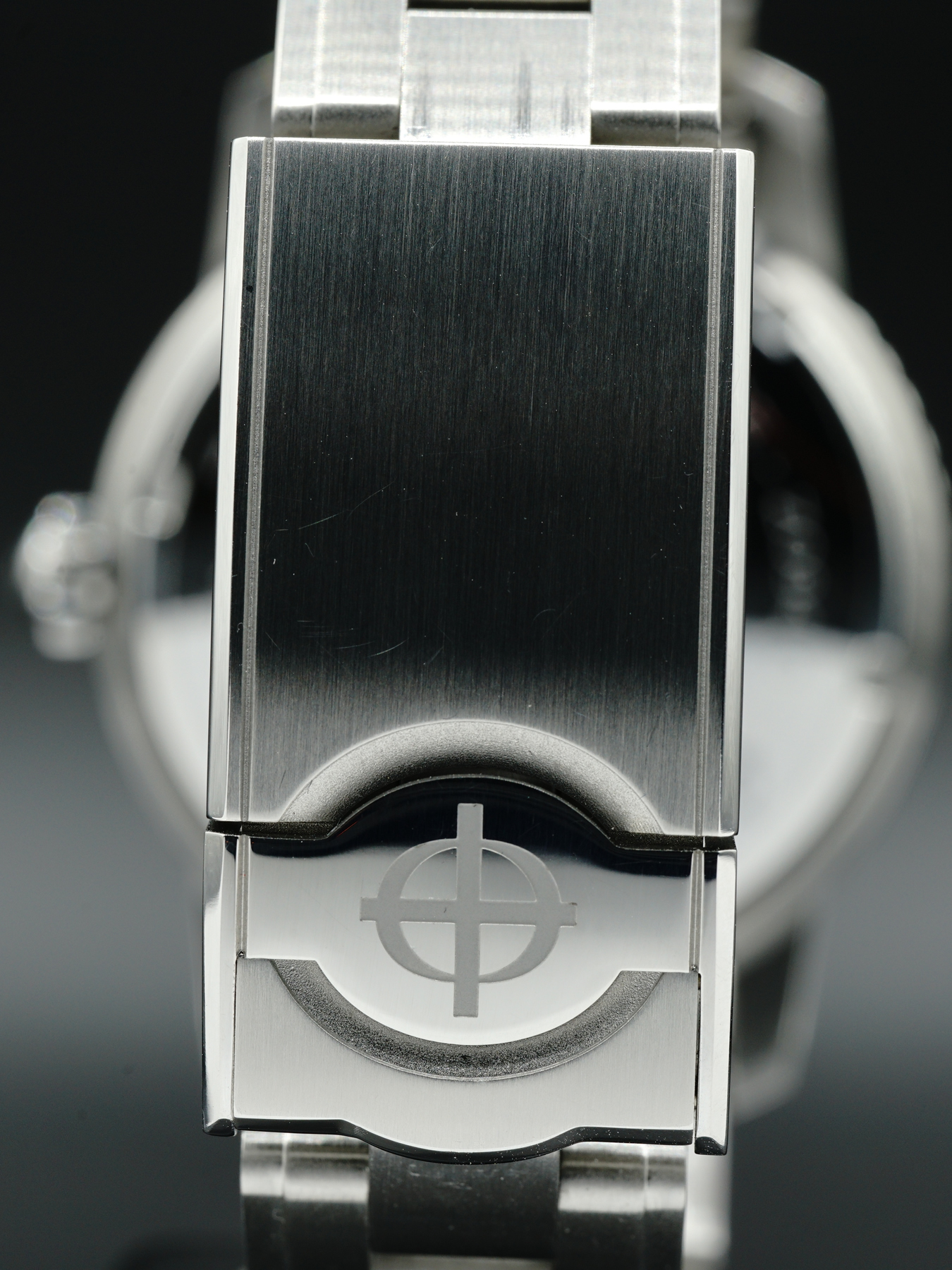 - This timepiece features a 40mm steel case paired with a high quality steel bracelet. It showcases a distinctive silver dial and is powered by a precise automatic winding movement. The watch is designed with a water resistance of up to 200m.