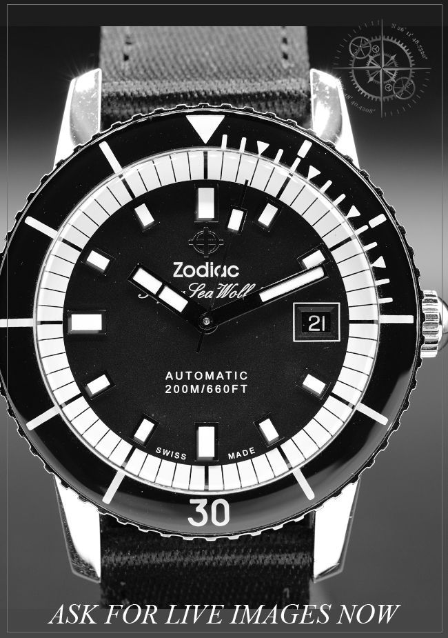 This Zodiac Super Sea Wolf ZO9263 is in GREAT condition. This watch includes its Original Box and Original Papers. This watch has been fully authenticated and certified by Exquisite Timepieces.