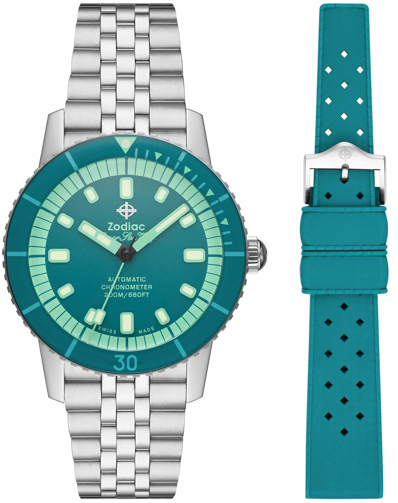 - This timepiece features a 40mm steel case paired with a high quality steel bracelet. It showcases a distinctive aquamarine dial and is powered by a precise automatic winding movement. The watch is designed with a water resistance of up to 200m.