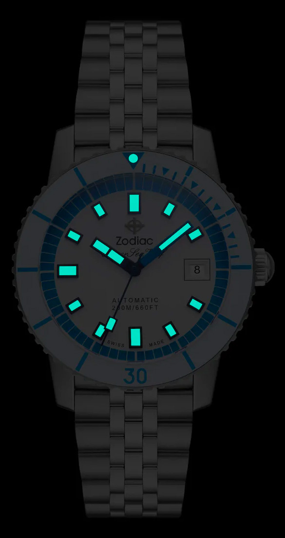 The Super Sea Wolf Compression channels much of the same utility that went into the original Sea Wolf 1953 design but with the modern, innovative functionality that Zodiac is known for. With water resistance up to 200 meters, the durable steel case is designed to perform both underwater and on land.
